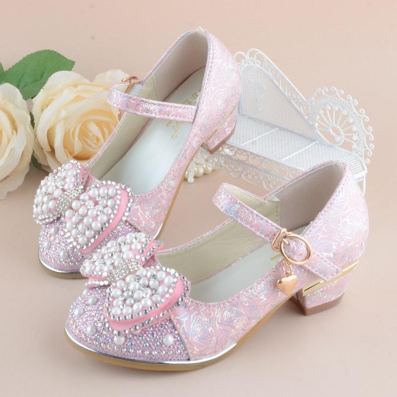 Kid Baby Girl Princes Party And Wedding Flower Leather Shoes Fashion High Heel Shoe