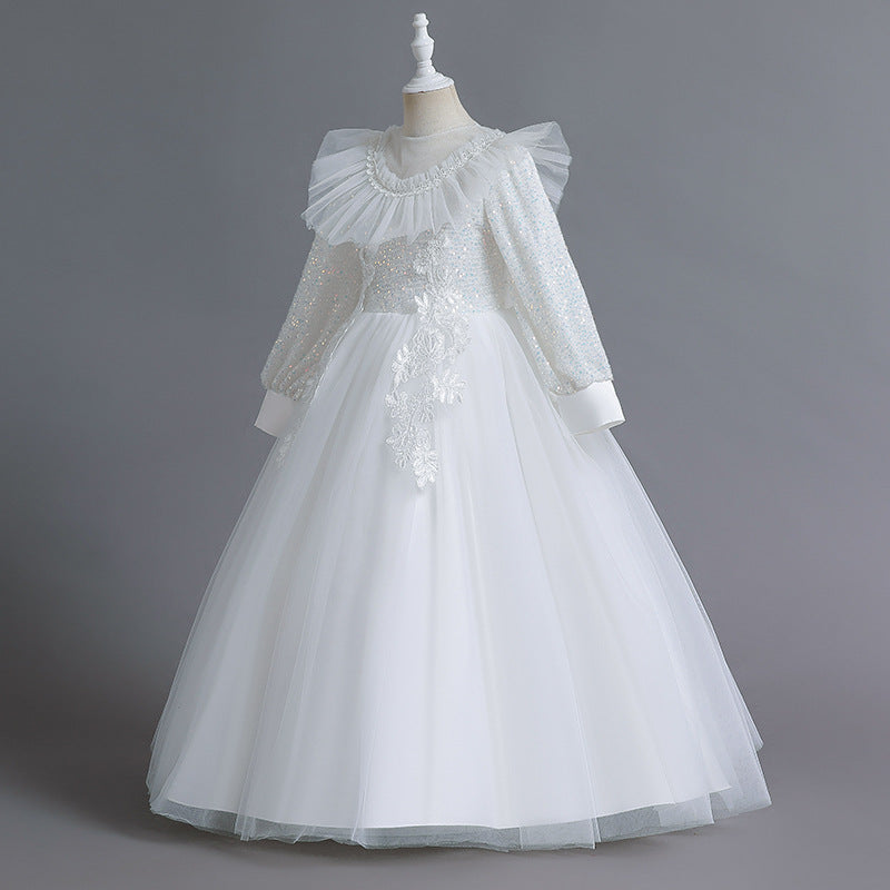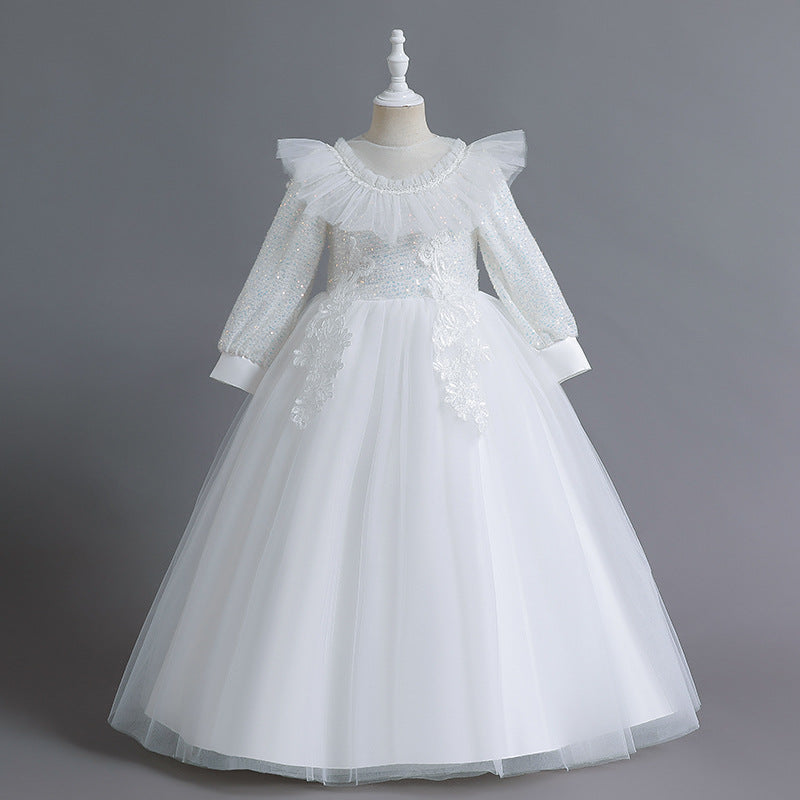 3-12T Kid Girl Long Sleeve Mesh Lace Walk Show Hosting Dress