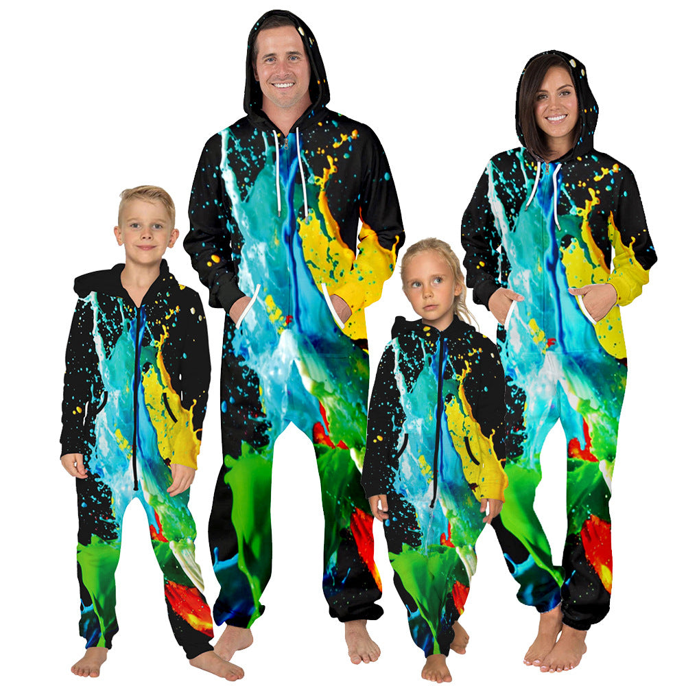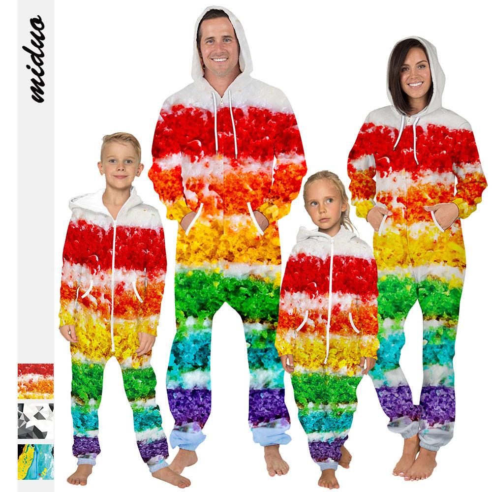 Family Matching Digital Printing Parent-child Long Sleeve Pajamas