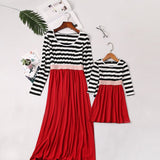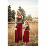 Family Matching Mother Daughter Dresses Striped Child Outfits Look