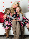 Family Mommy And Me Floral & Striped Print Raglan Dress