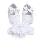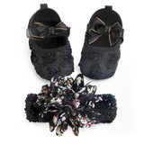 Baby Girls Shoes Sweet Floral Walking Soft Shoes Ribbon Headwear