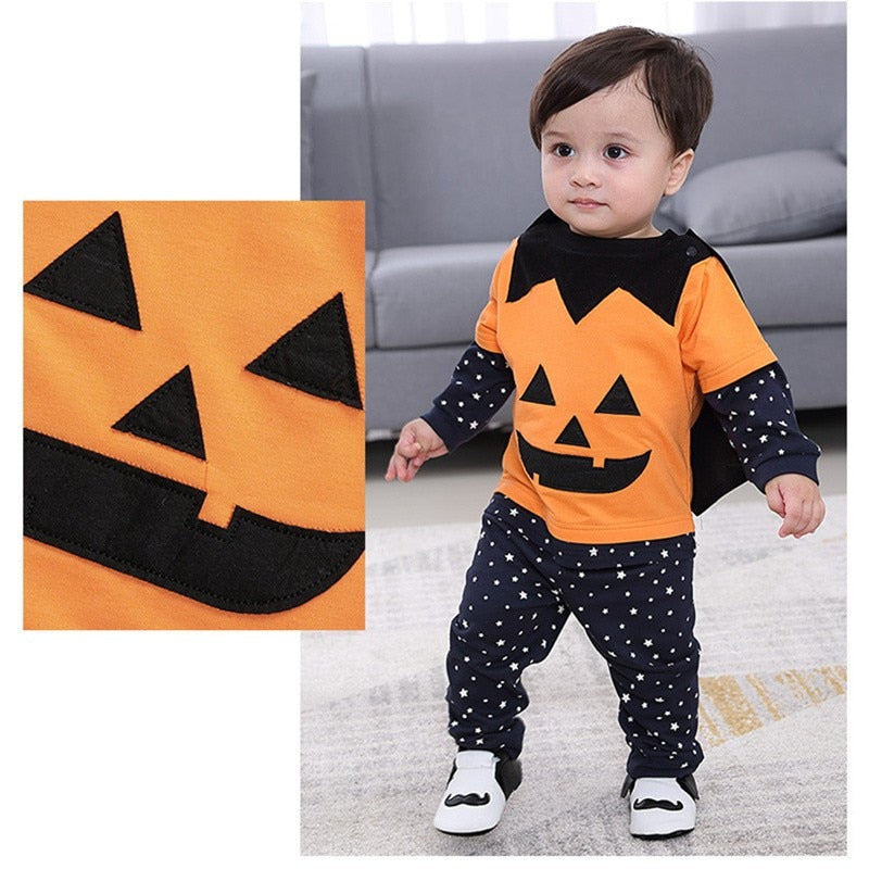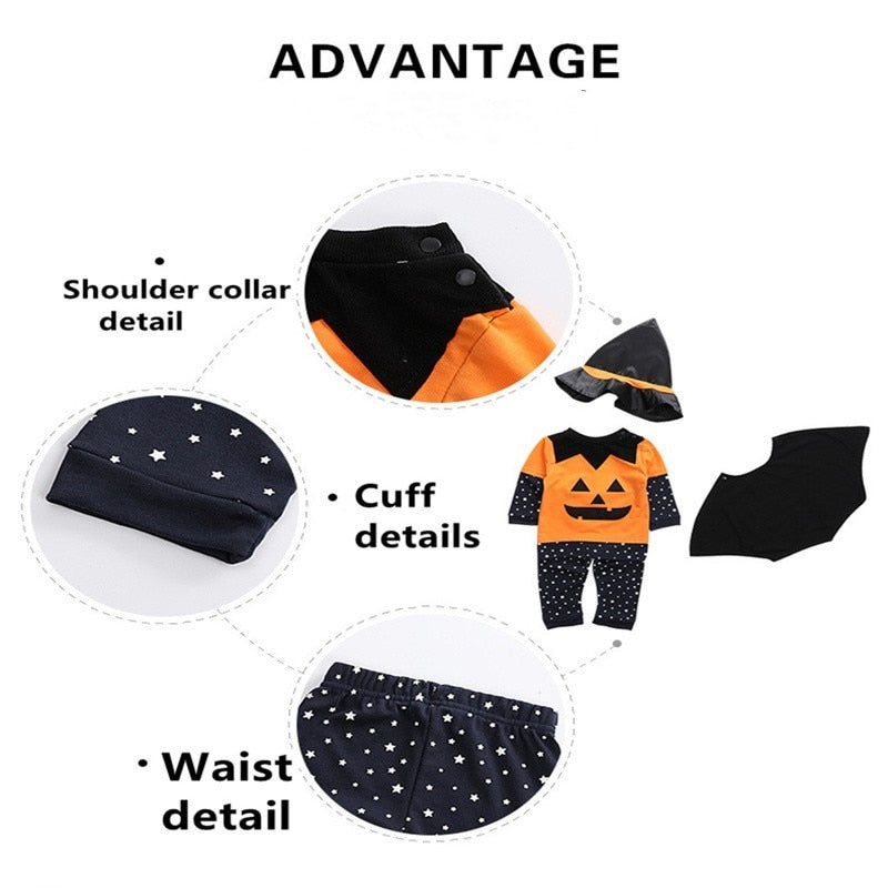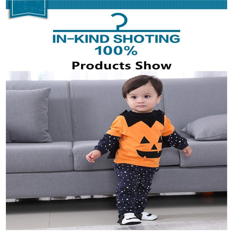 Baby Boy Girl Halloween Suit With Hats Pumpkin Clothing 3 Pcs