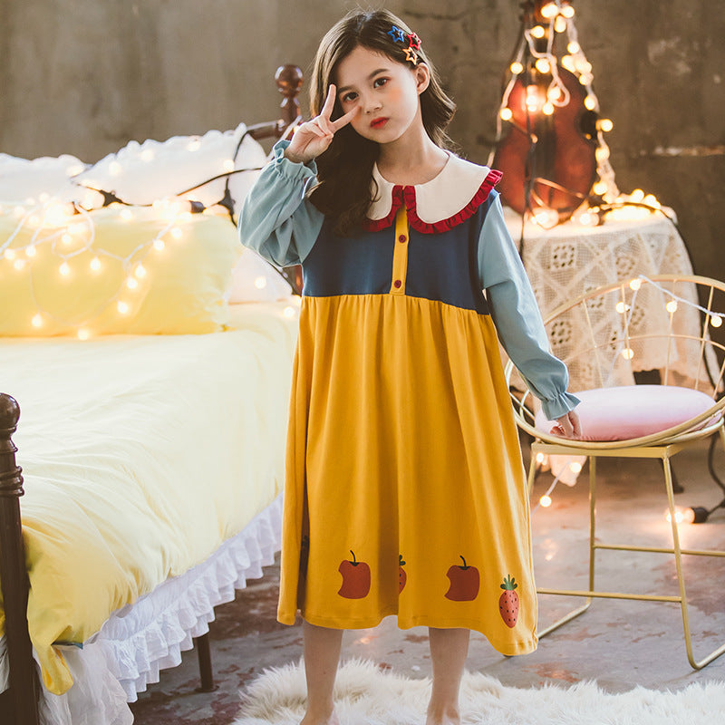 Kid Girls Cotton Nightwear Loose Long Sleeved Pajamas