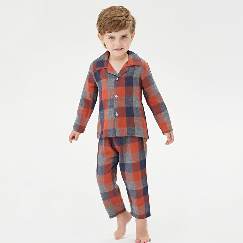 Boy Casual Multicolor Plaid Long-sleeved 2 Pcs Pajamas