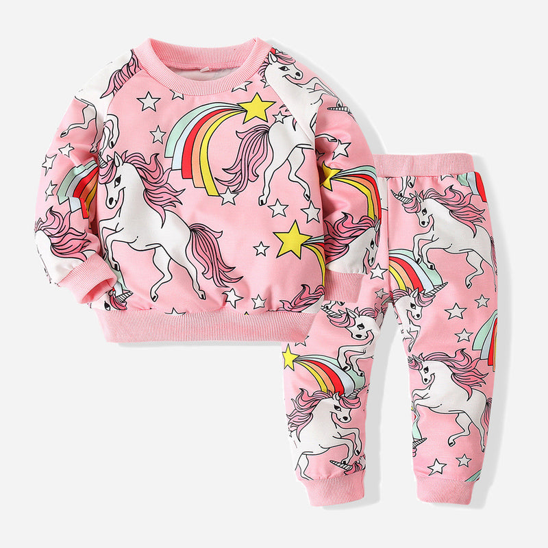 Kid Baby Girls Long Sleeve Cartoon Unicorn Tracksuit 2 Pcs Set Pajamas