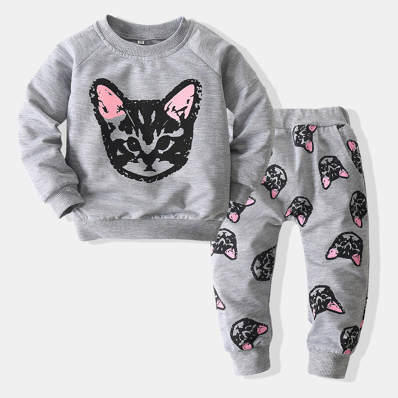 Kid Boy Girl Suit Frosted Cat Harlan 2 Pcs Sets Pajamas