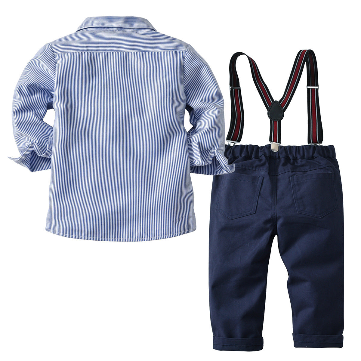 Striped Long-sleeved Lined Babe Boy Set Formal 2 Pcs Suits