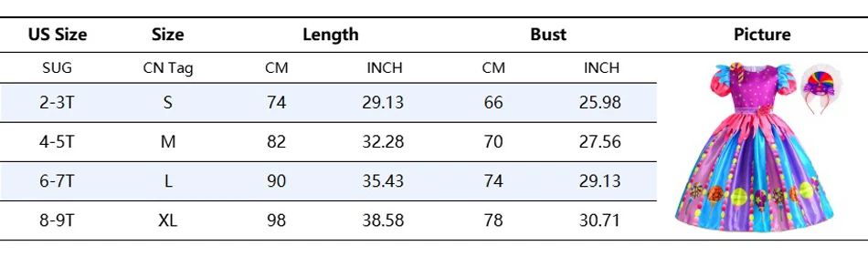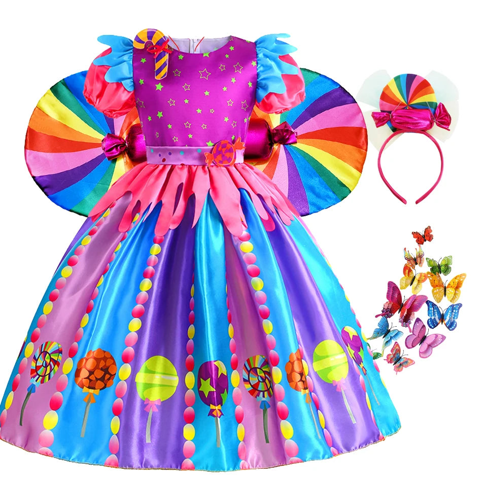 2-9Y Kid Baby Girl Rainbow Candy Costume Cosplay Lollipop Princess Dress