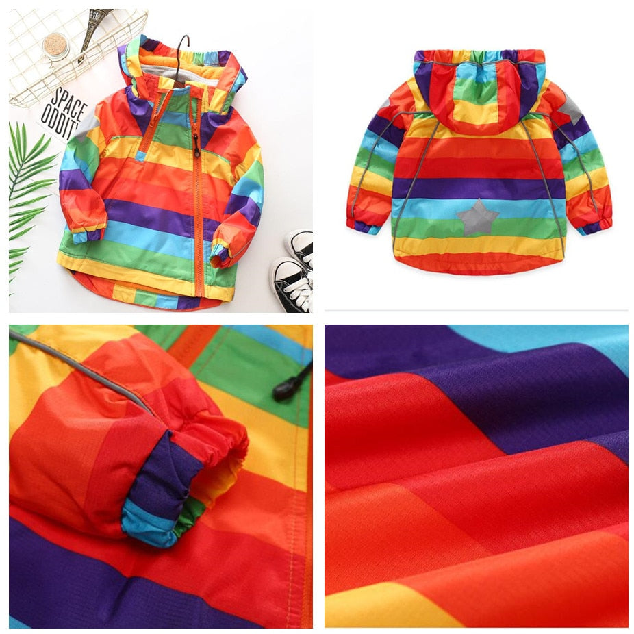 Kids Boys Girls Rainbow Parka Autumn Warm Windbreaker Jacket 2-12 Year