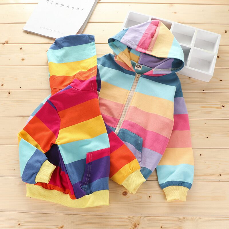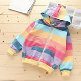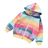 Autumn Baby Girls Jacket Kids Rainbow Stripe Long Sleeve Coat