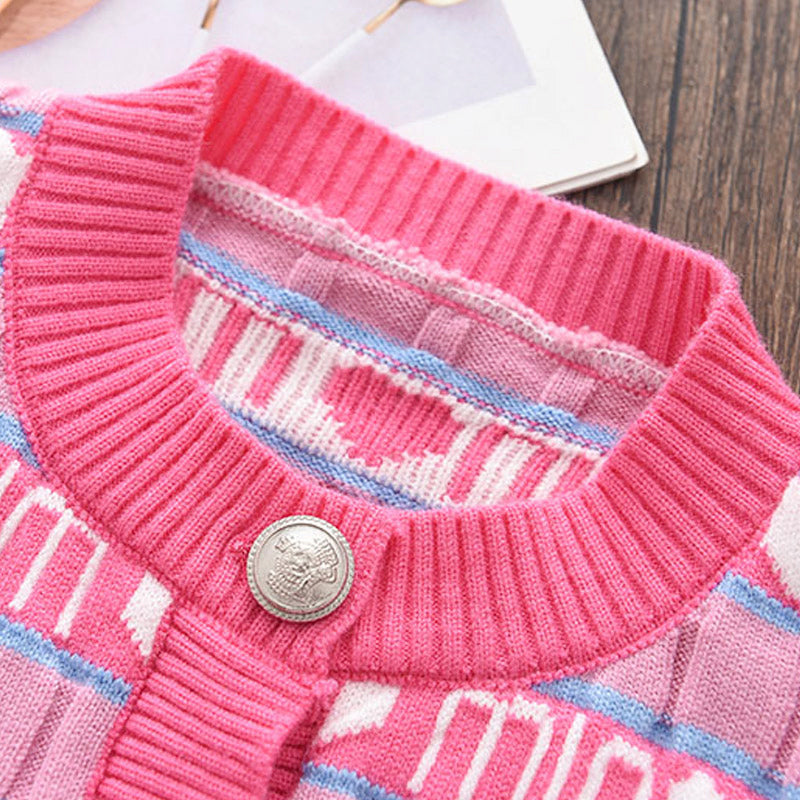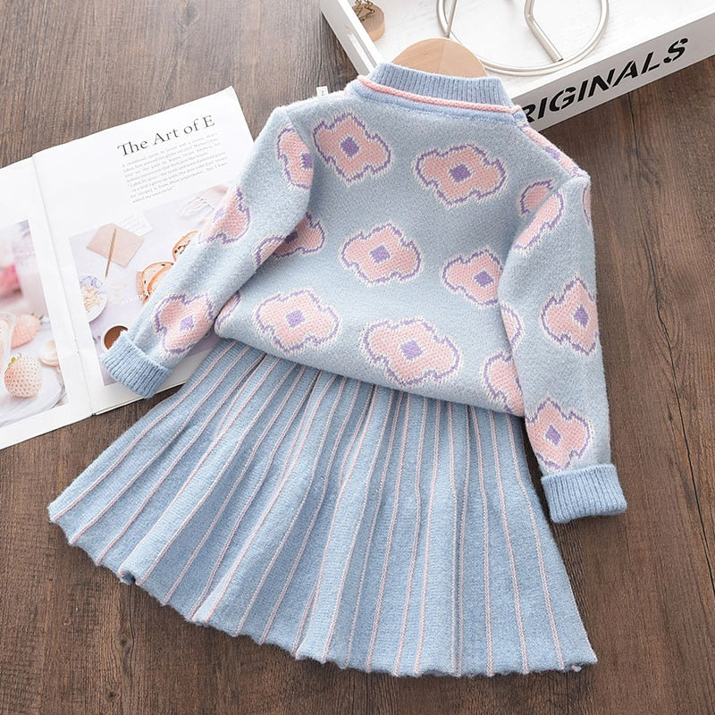 Kid Gir Knitted Print Sweater Dress Outfits 2 Pcs Sets