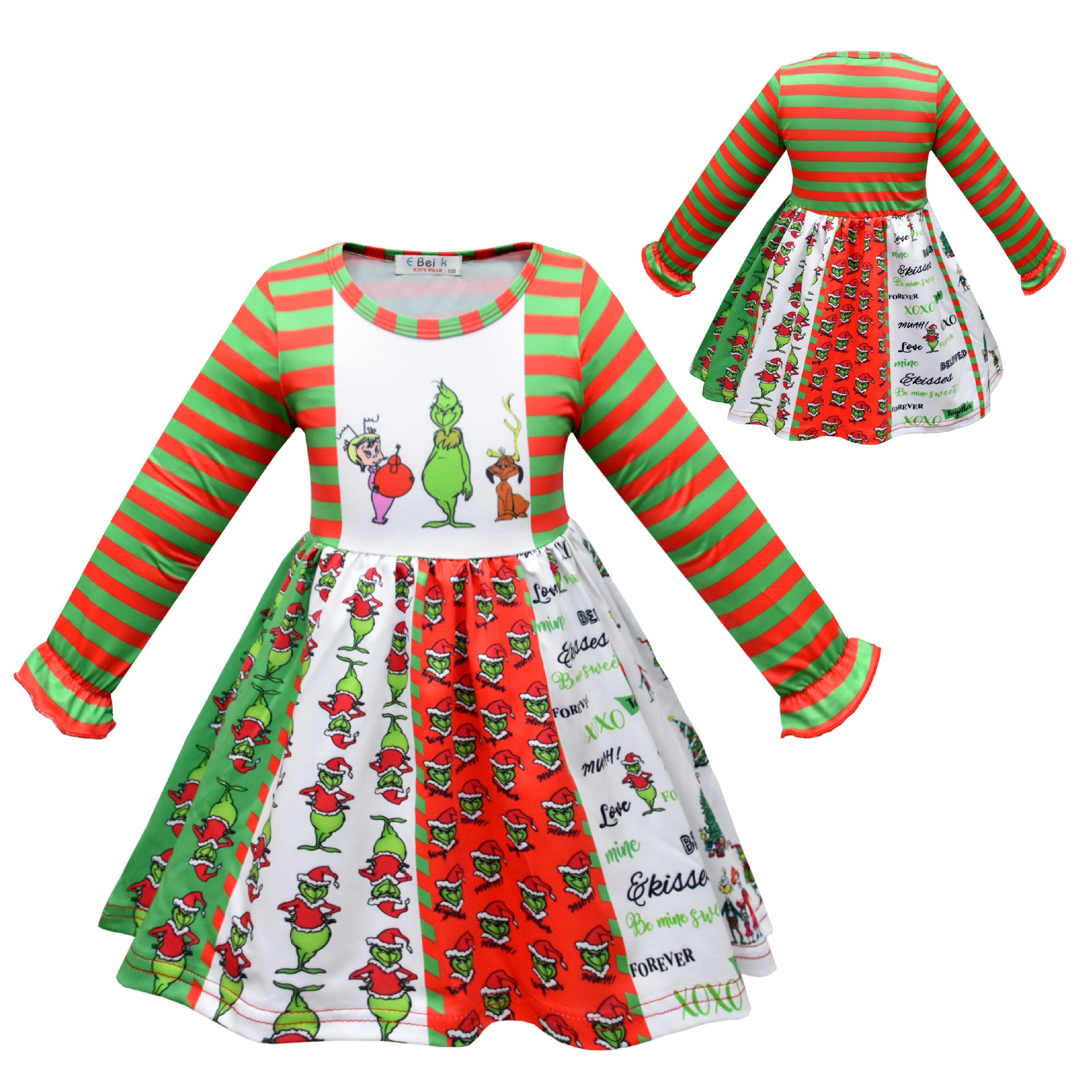 Kid Baby Girl Christmas Deplorable Green Fur Grinch Dress