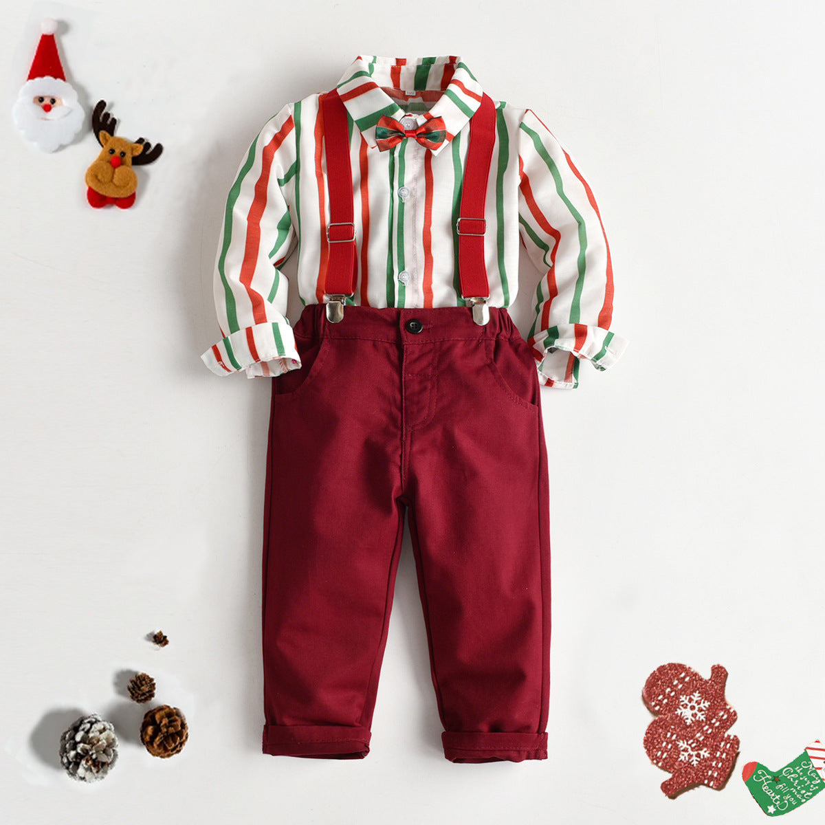 Kid Baby Boy Tie Striped Long-sleeved Suspenders Gentlemen 4 Pcs Sets