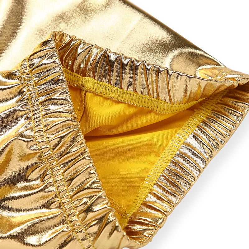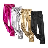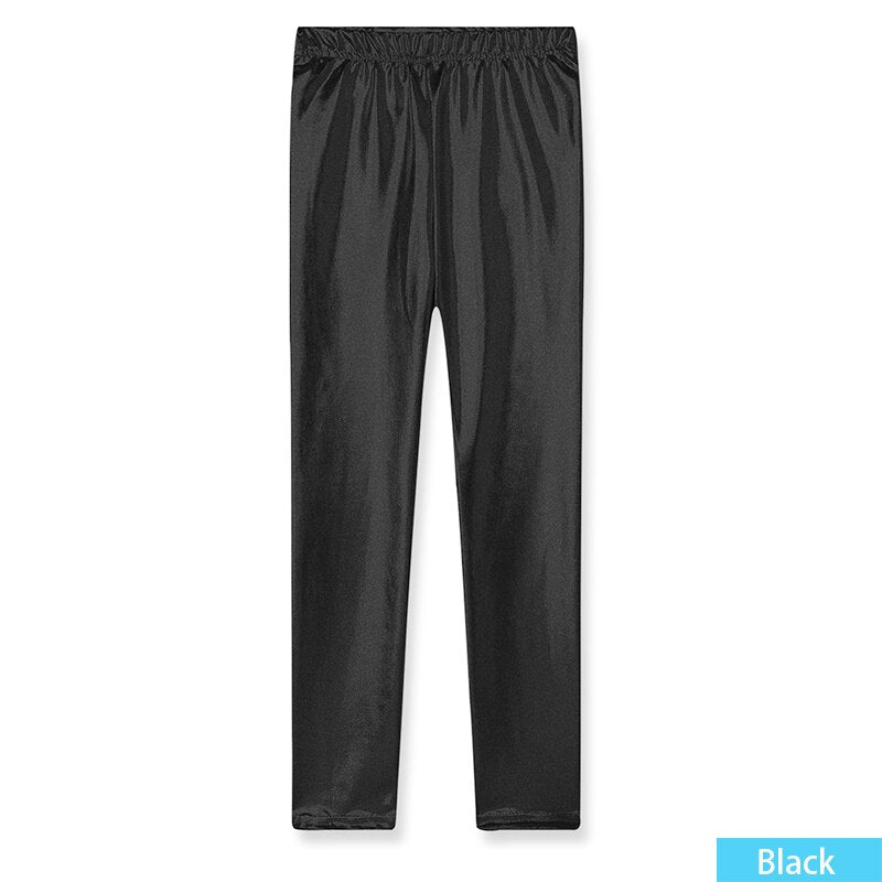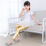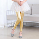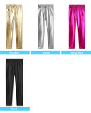 Girls Skinny Faux Leather Leggings Shiny Metallic Stretch Pants
