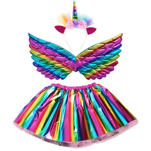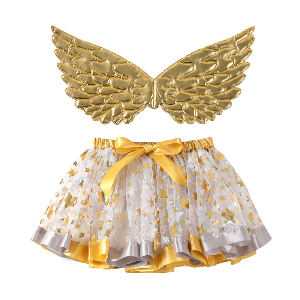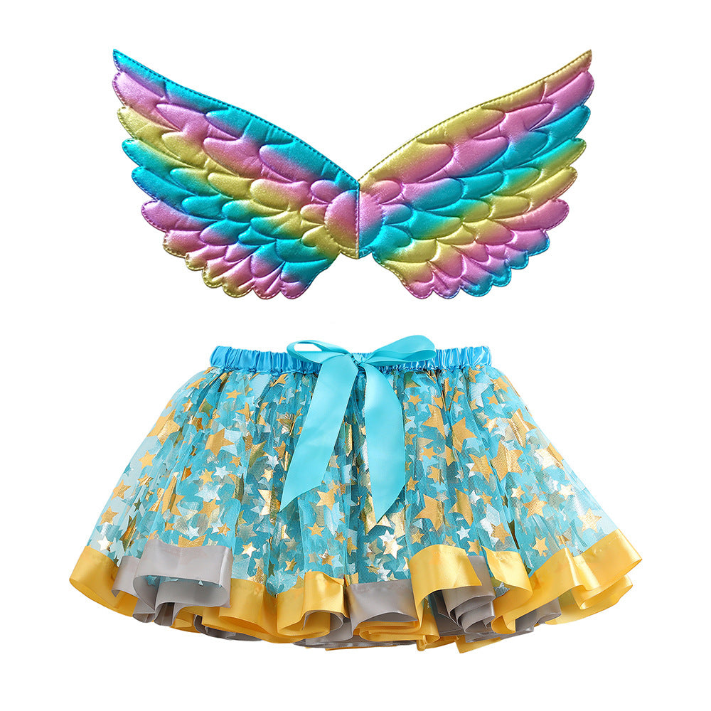 Kid Girl Wings Stars Printed Gauze Bows Skirts
