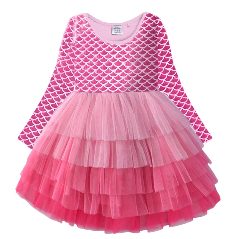Girls Elegant Tutu Dress Long Sleeve Princess Vestidos Party Dresses 2-8 Years