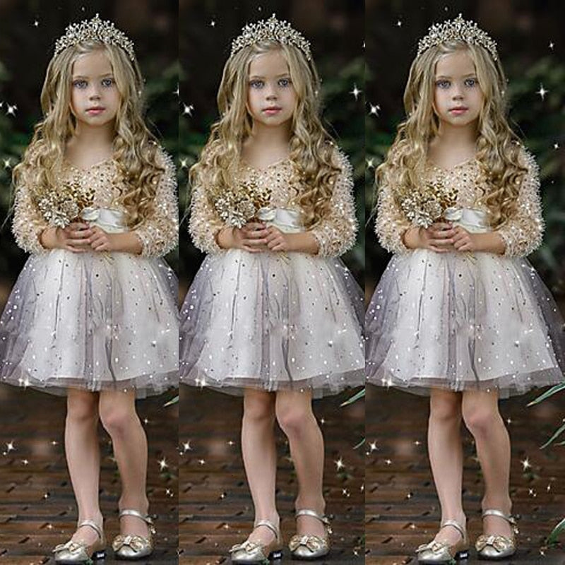 Girls Fashion Dress Shiny Sequin Princess Party Evening Tutu Dress 3-12 Years