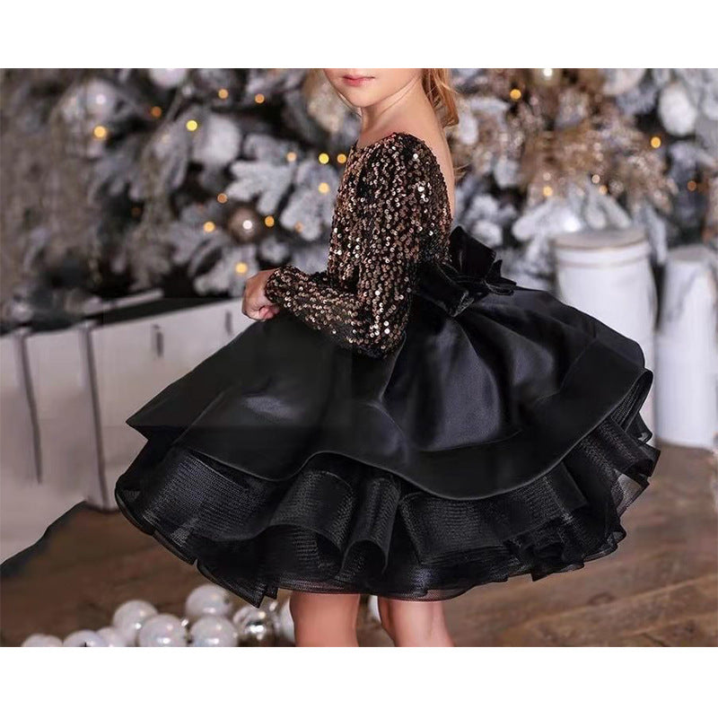 Kid Baby Girl Black Sequined Pompous Host Performance Dress