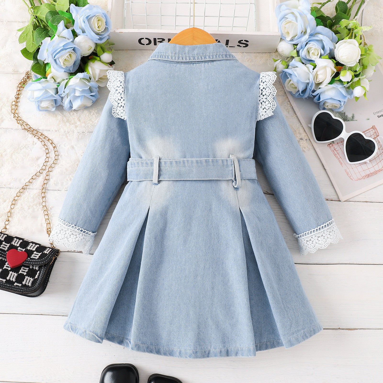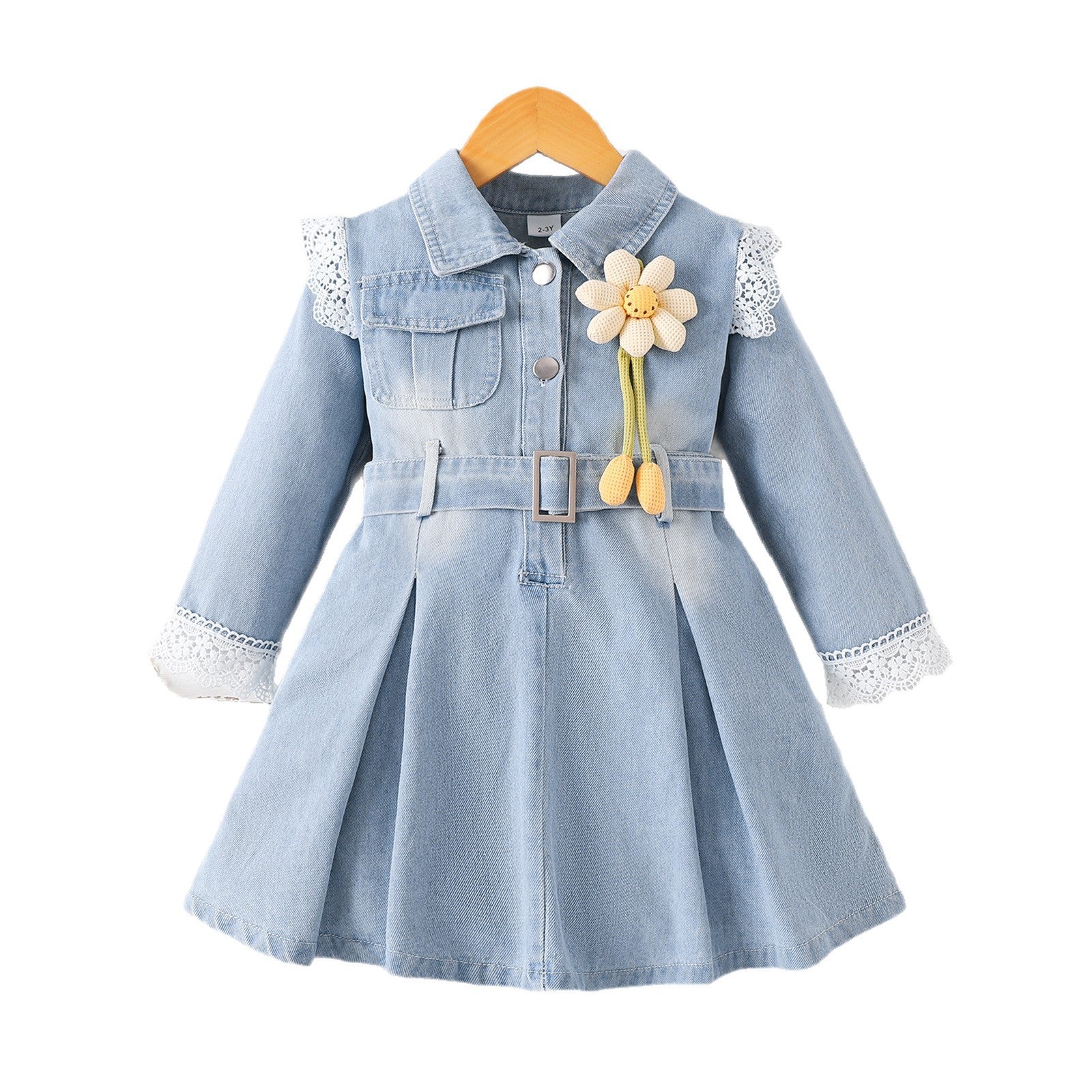 Kid Baby Girl Lace Trim Dress Belt Dress
