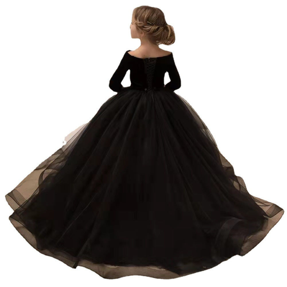 Kid Baby Girls Tuxedo Evening Sweet Embroidery Host Piano Dresses