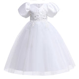 Kid Girls Wedding Party Beaded Flower Puff Sleeve Princess Pageant Dresses