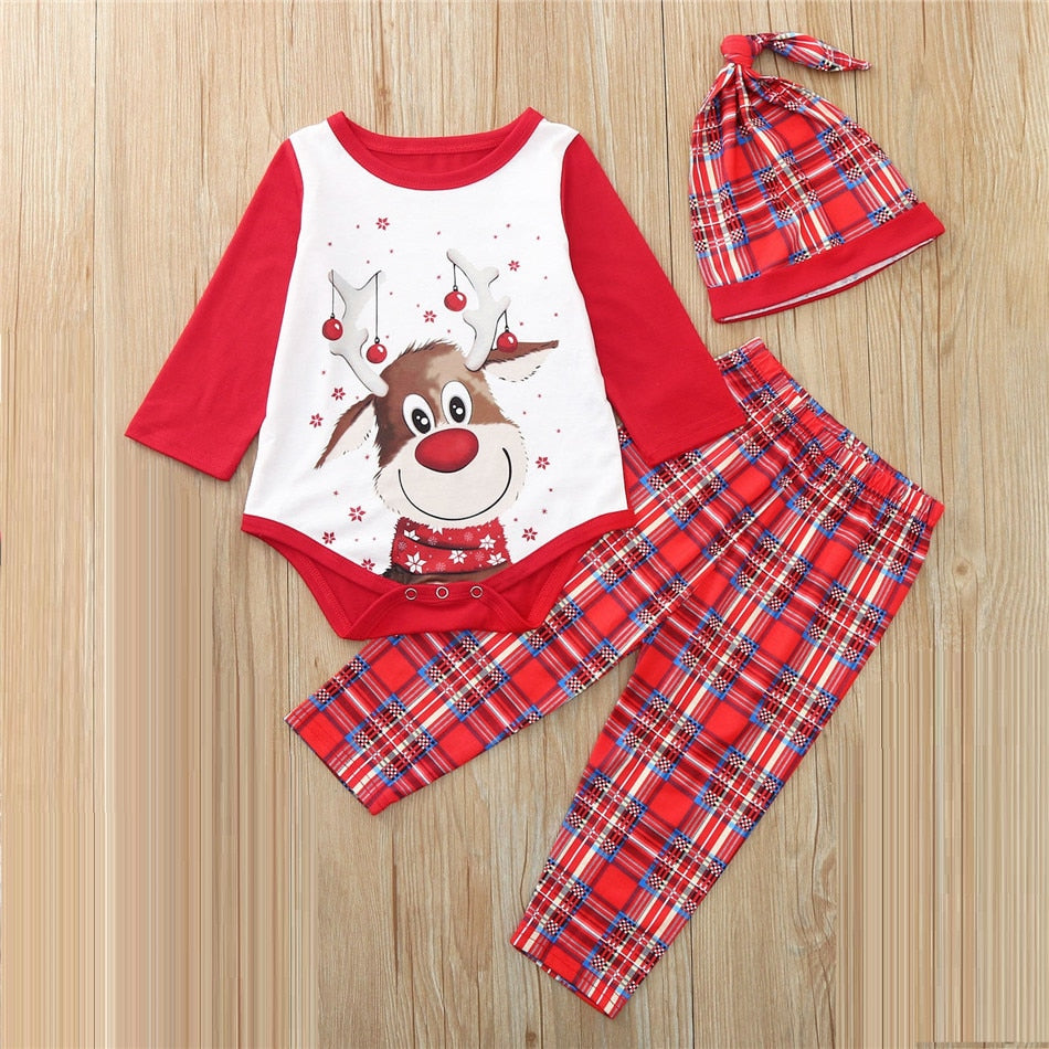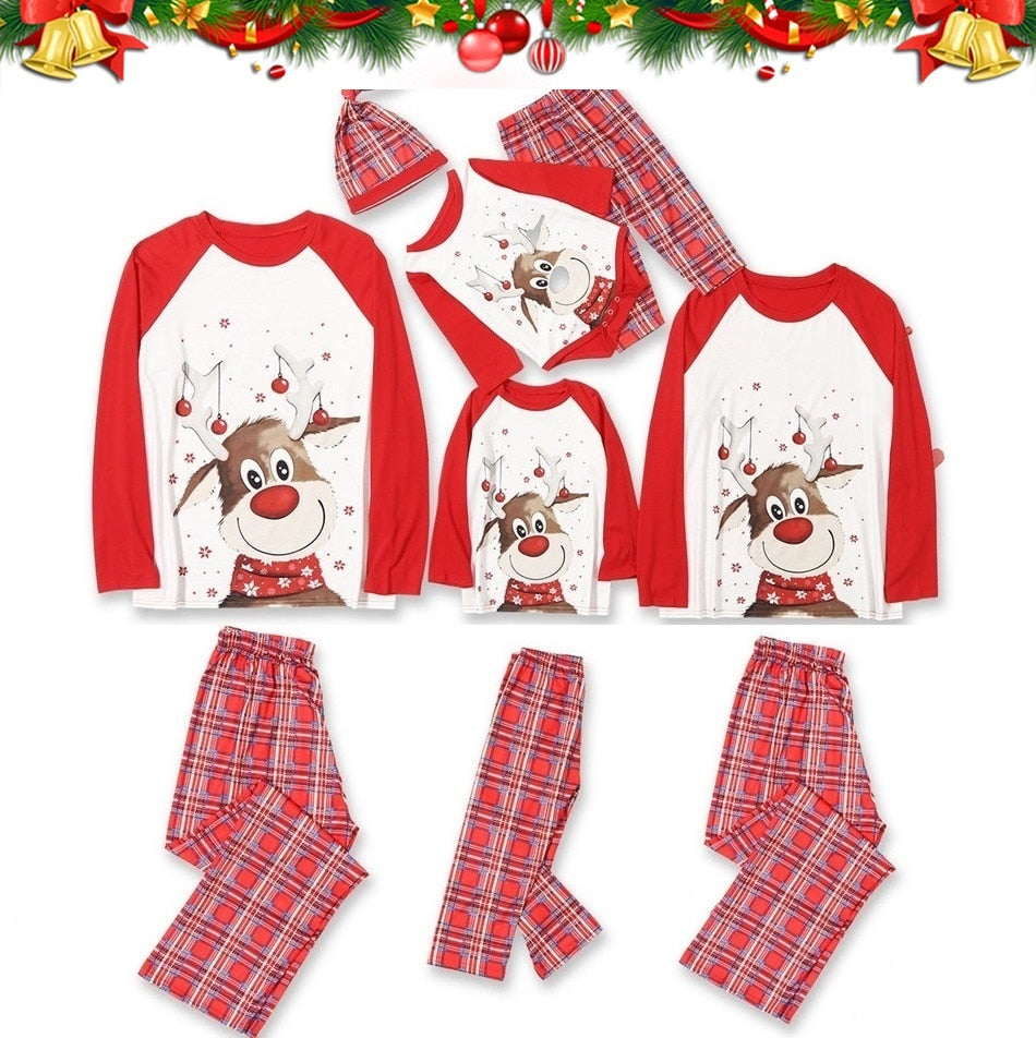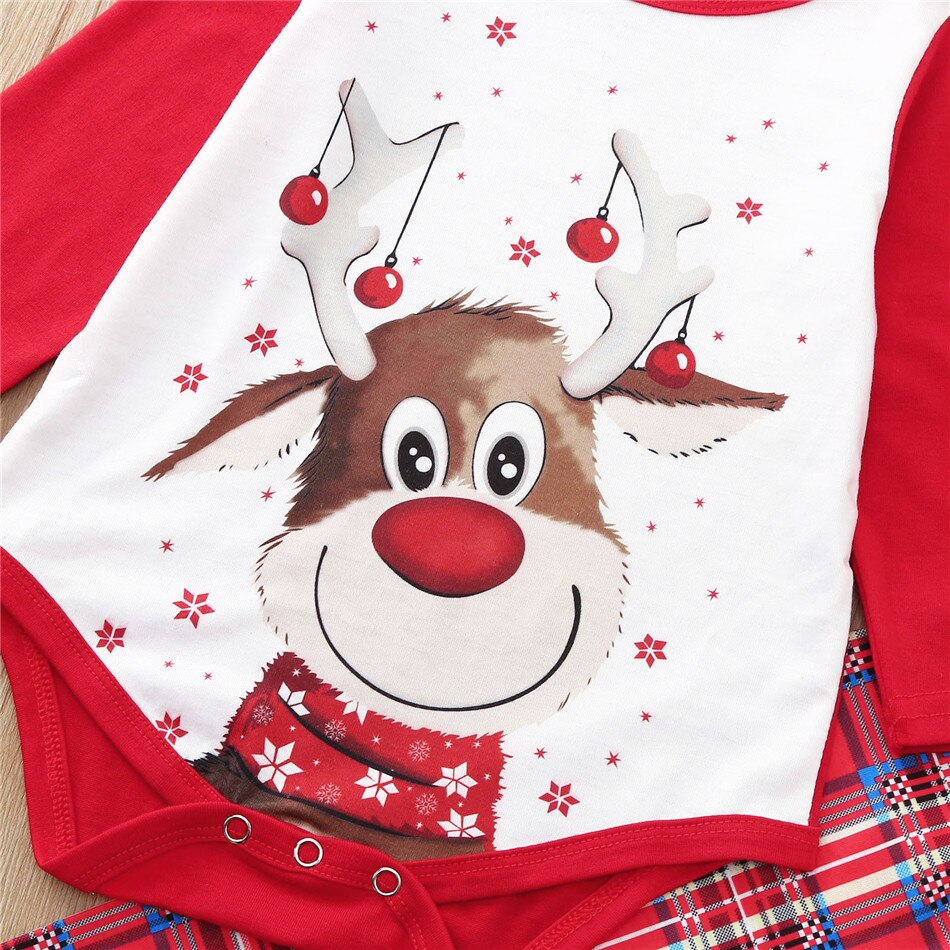 Plaid Christmas Family Matching Pajamas Set Deer Father Mother Kids Sleepwear