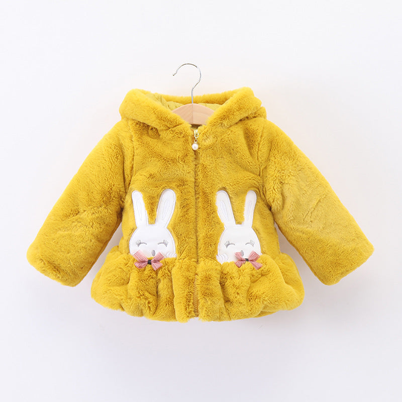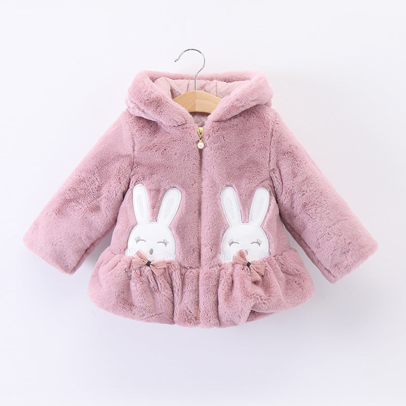 Baby Girl Cotton Short Ears Rabbit Embroidered Cute Thick Coats