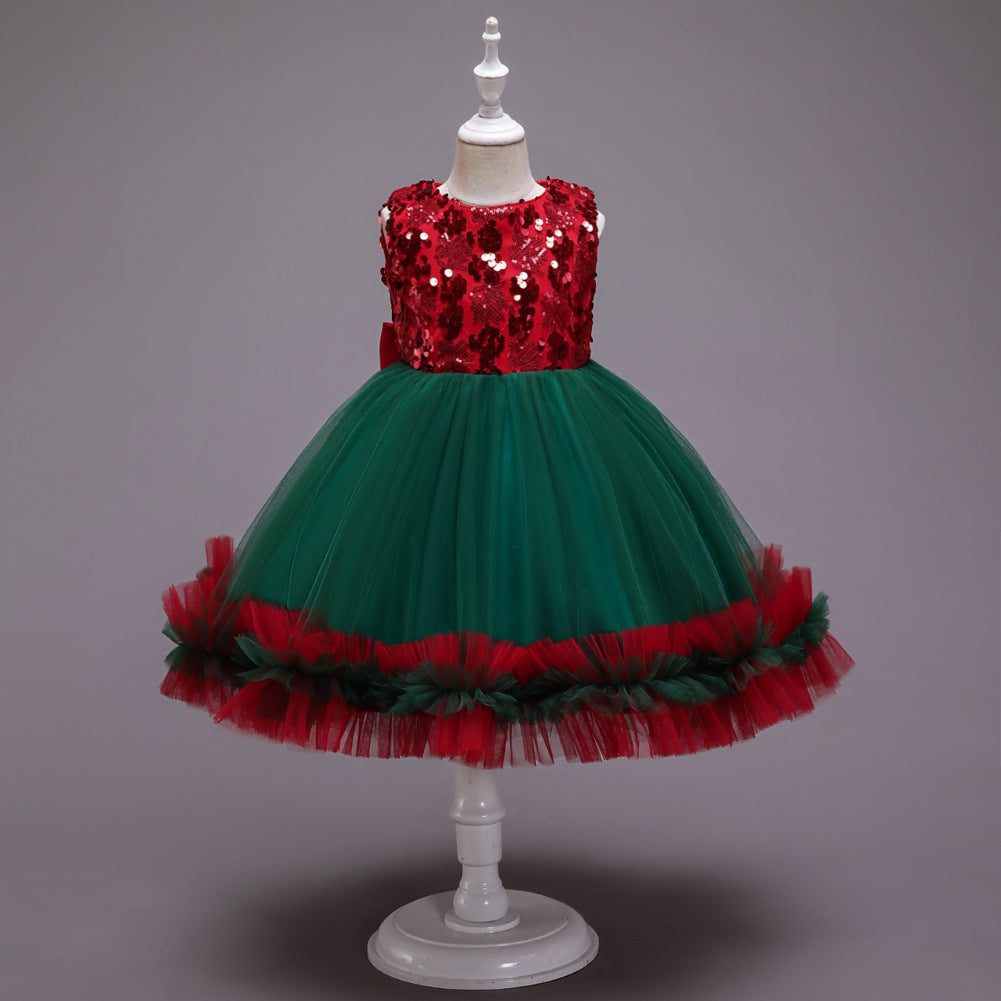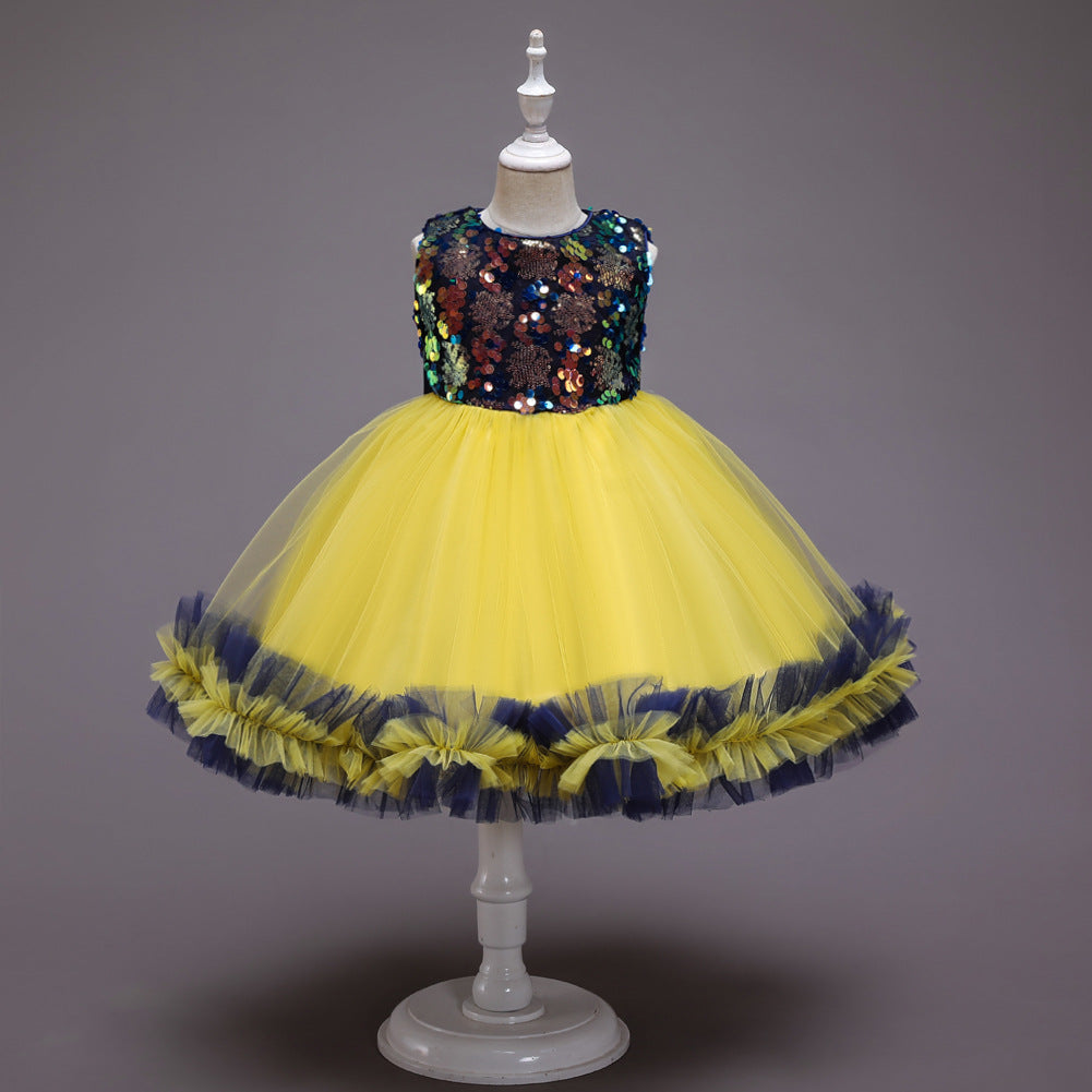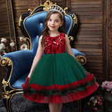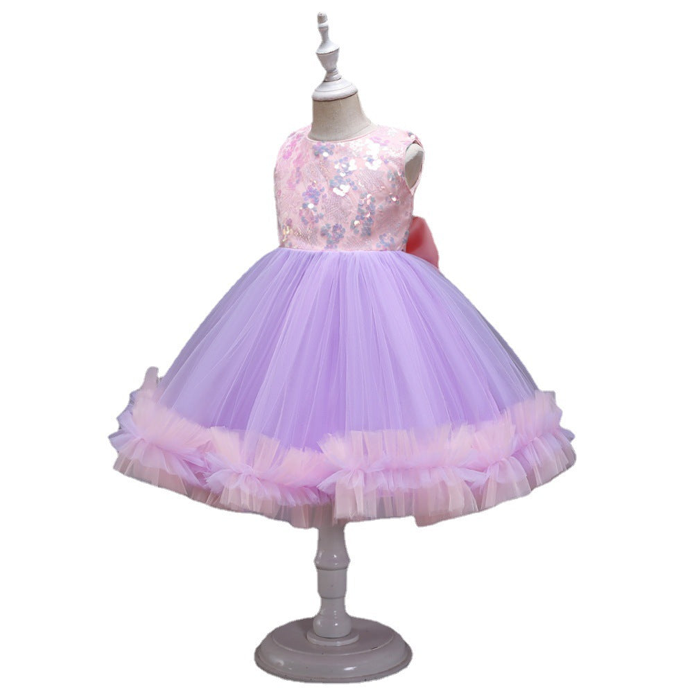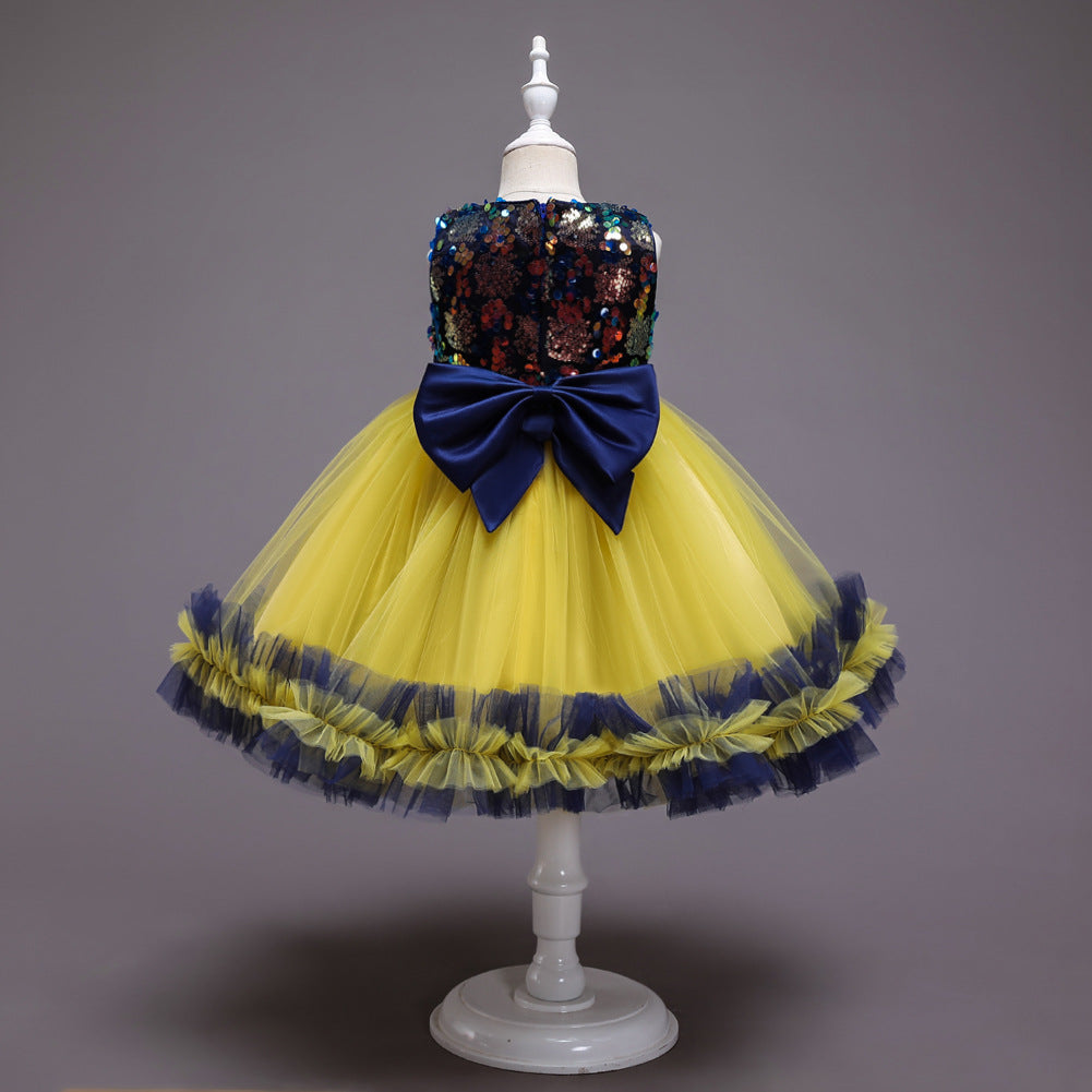 Kid Baby Girls Big Sequins Gauze Bow Tie Princess Pompous Dresses