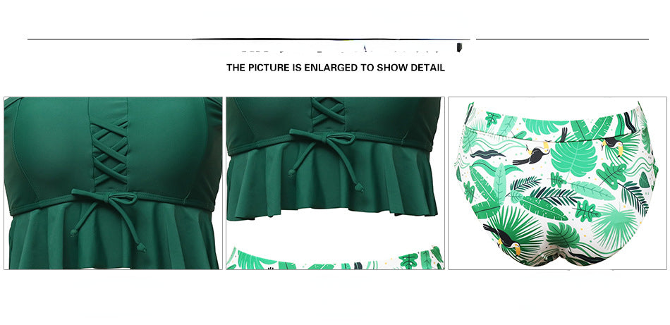 Family Matching Parenthood Tank Top Bikini Conservative High Waist Swimsuit