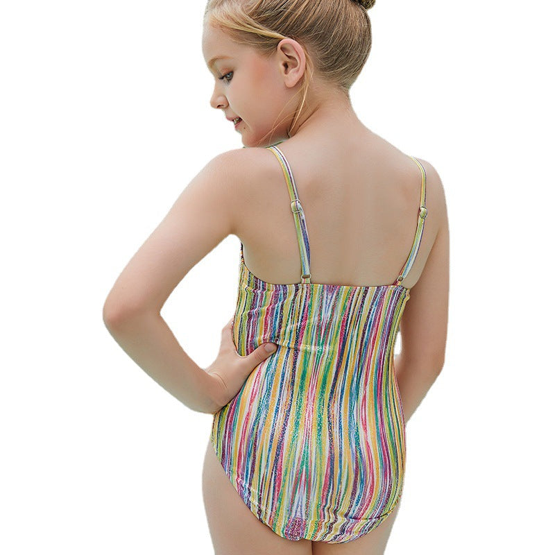 Kid Girls One-piece Tummy Covering Striped Swimsuit