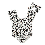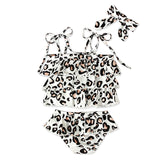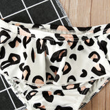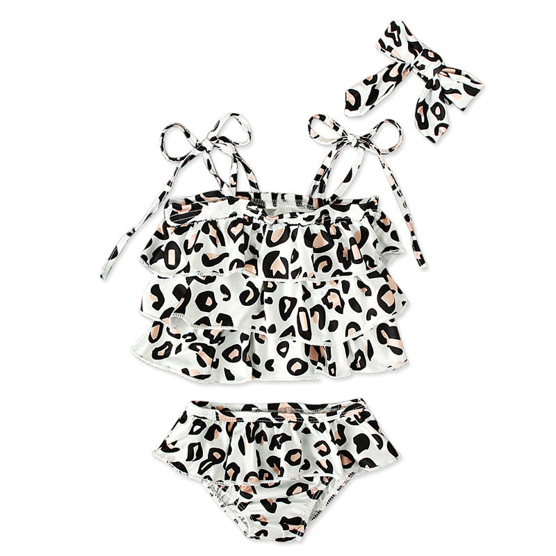 Kid Baby Girls Swimsuit Leopard Print Scarf 2 Pcs Sets
