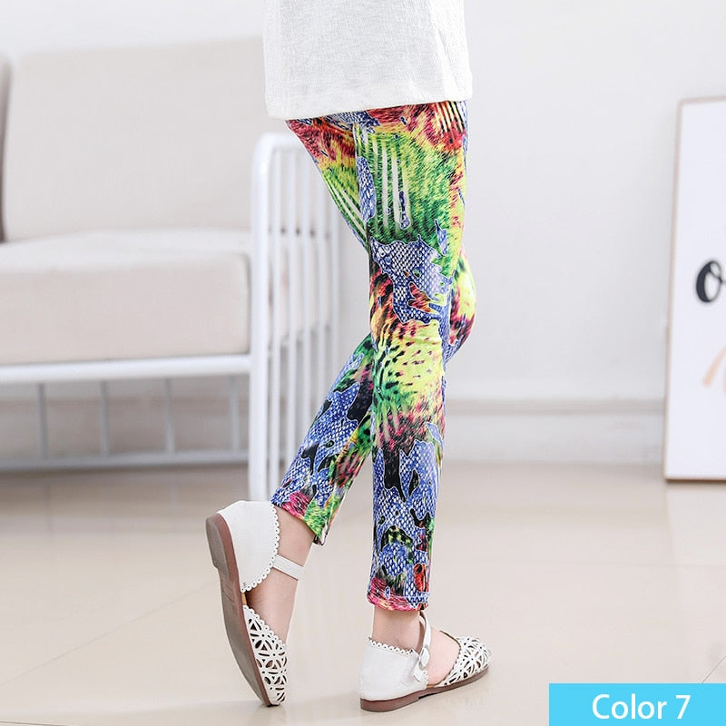 Girls Print Pants Print Flower Skinny Leggings 4-11 Years