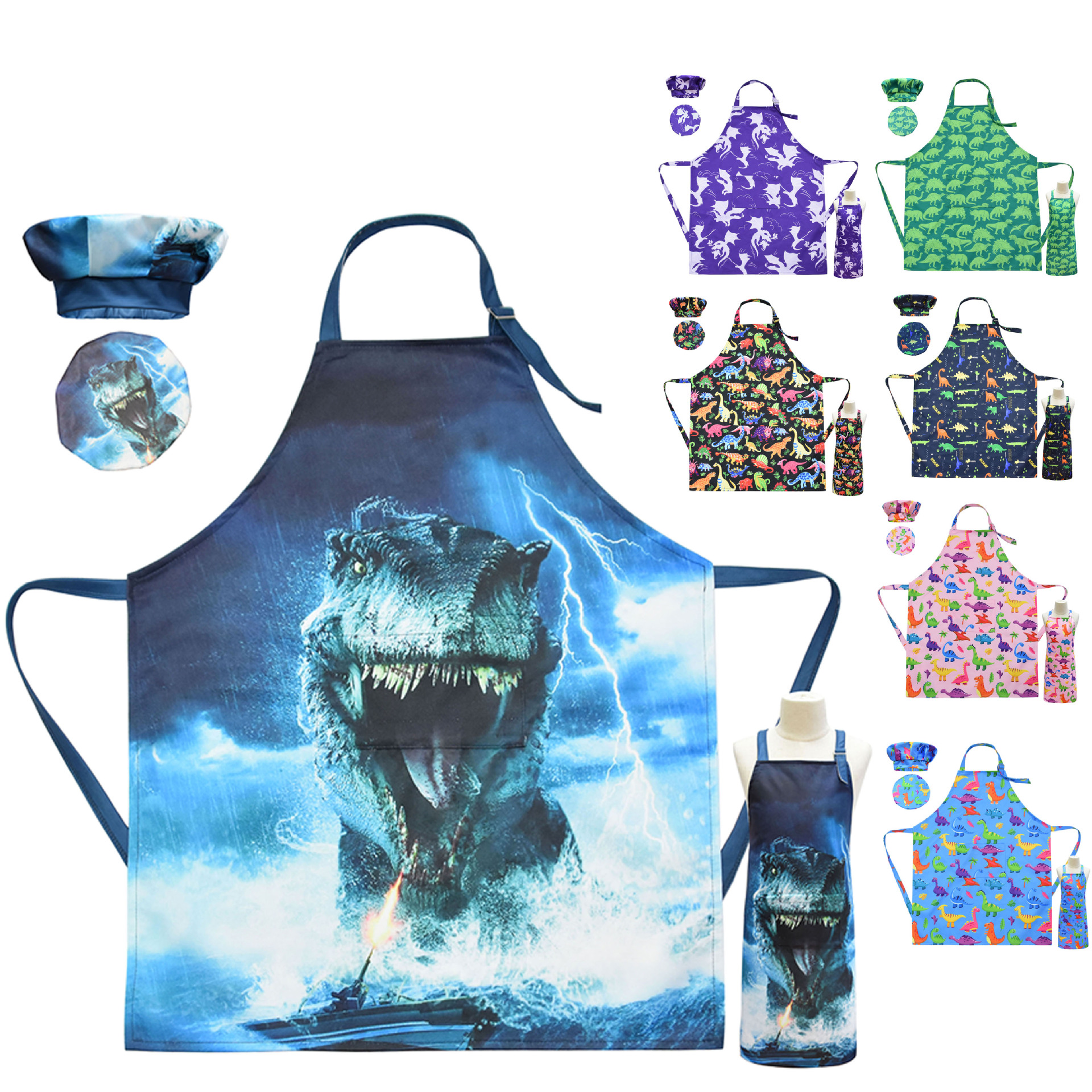 Kid Dinosaur Print Dirt-proof Cooking Chef Bake Drawing Apron
