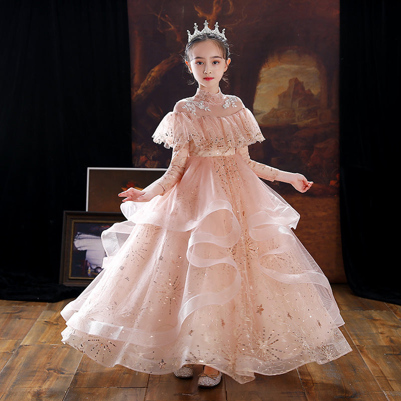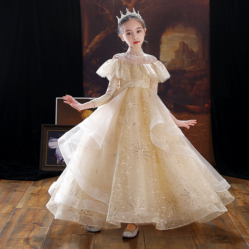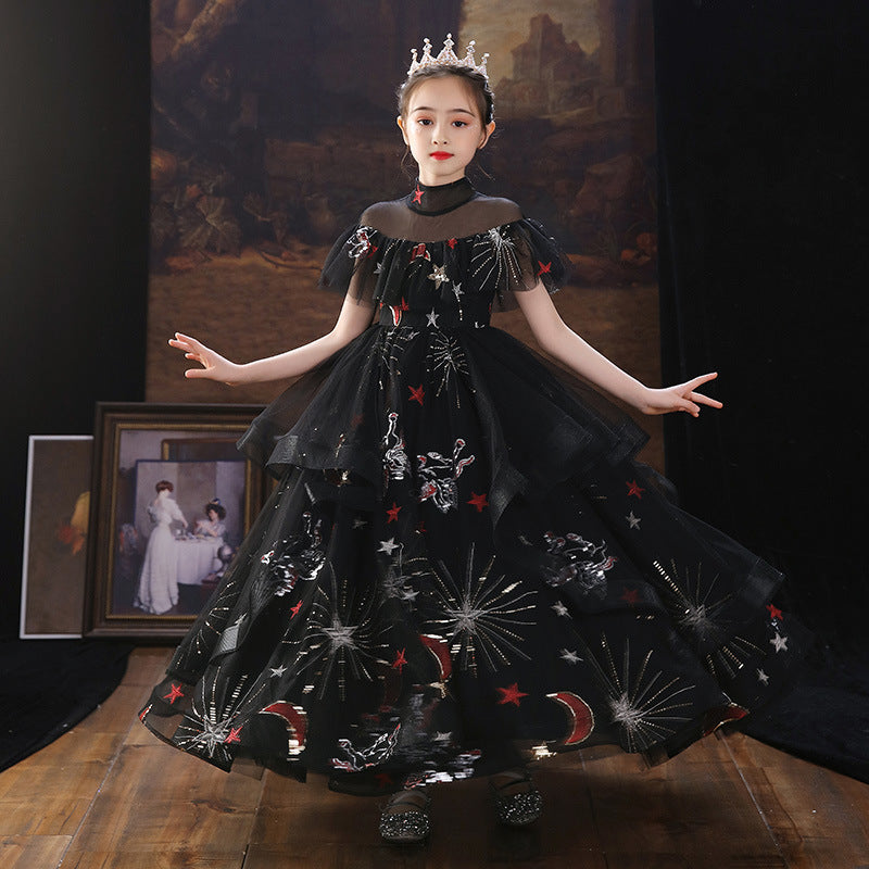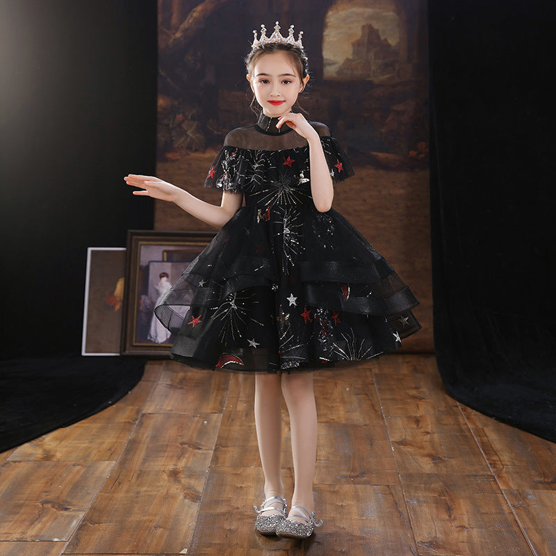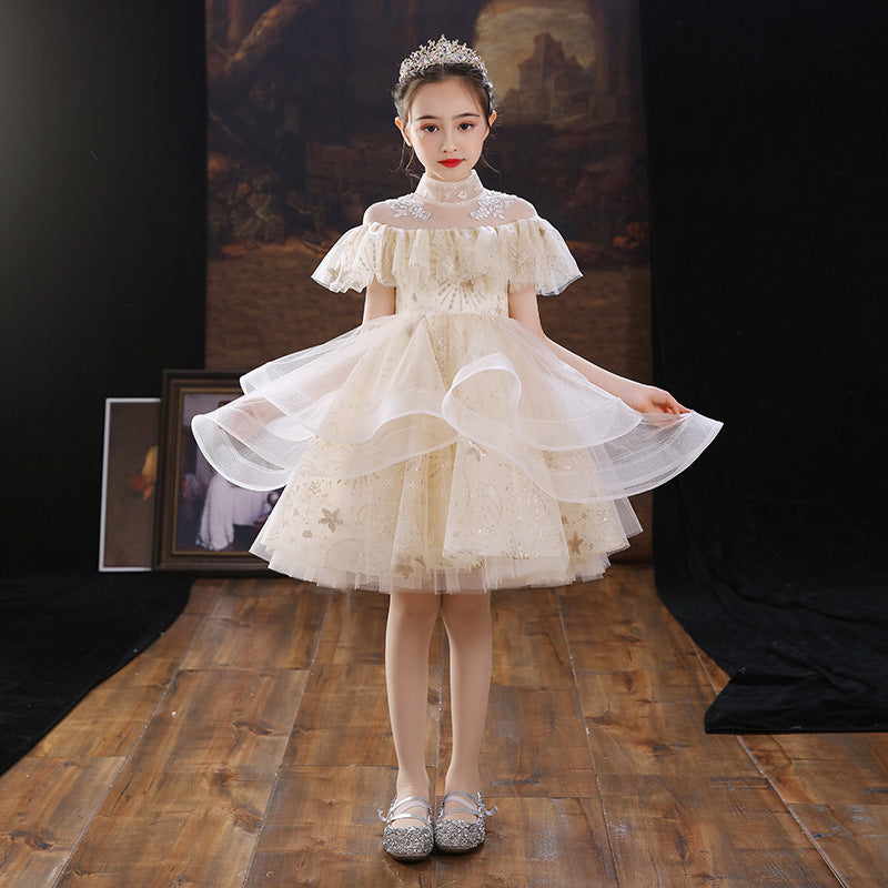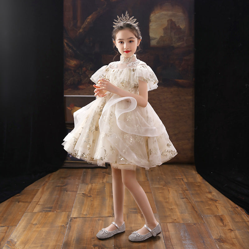 Kid Girl Catwalk Princess Flower Puffy Host Piano Dresses