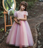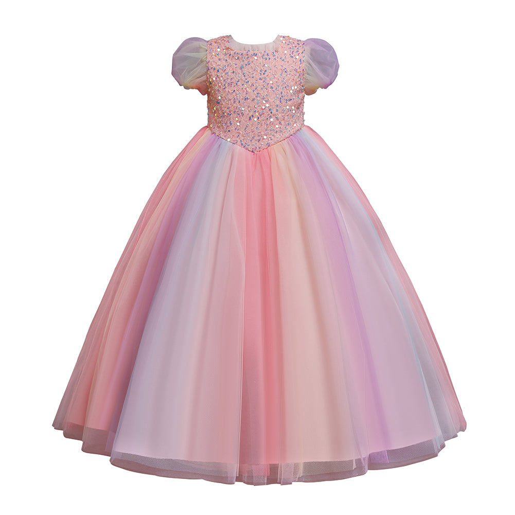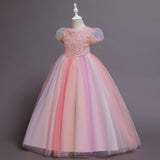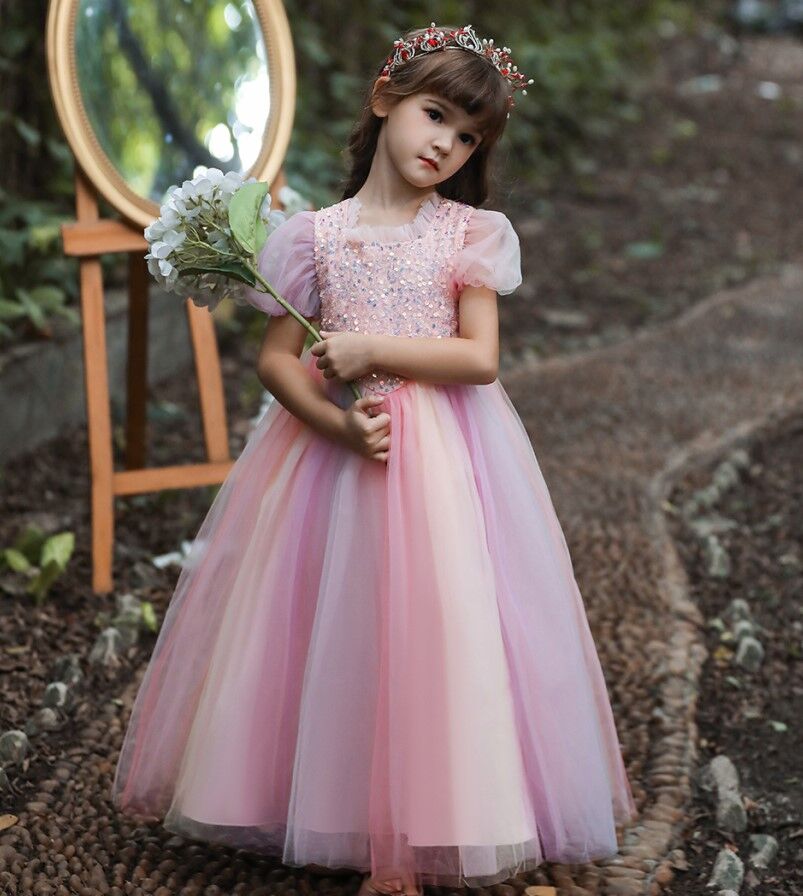 Kid Girls Sequins Flower Wedding Party Puff Sleeve Princess Pageant Dresses