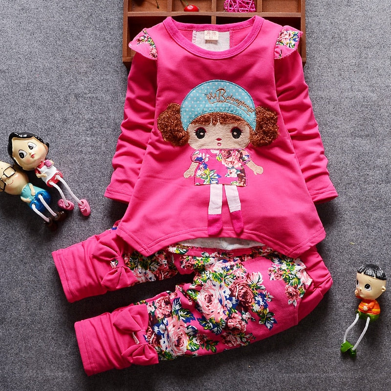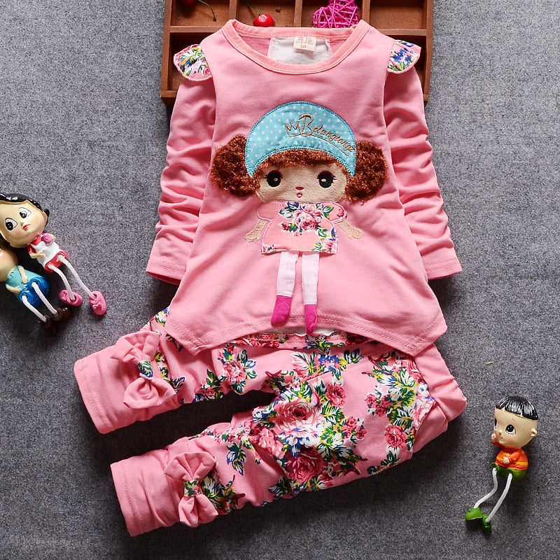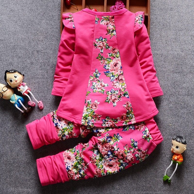 Baby Girl Casual Long-sleeved Tops Cartoon Cute Flower Print 2 Pcs Suit