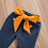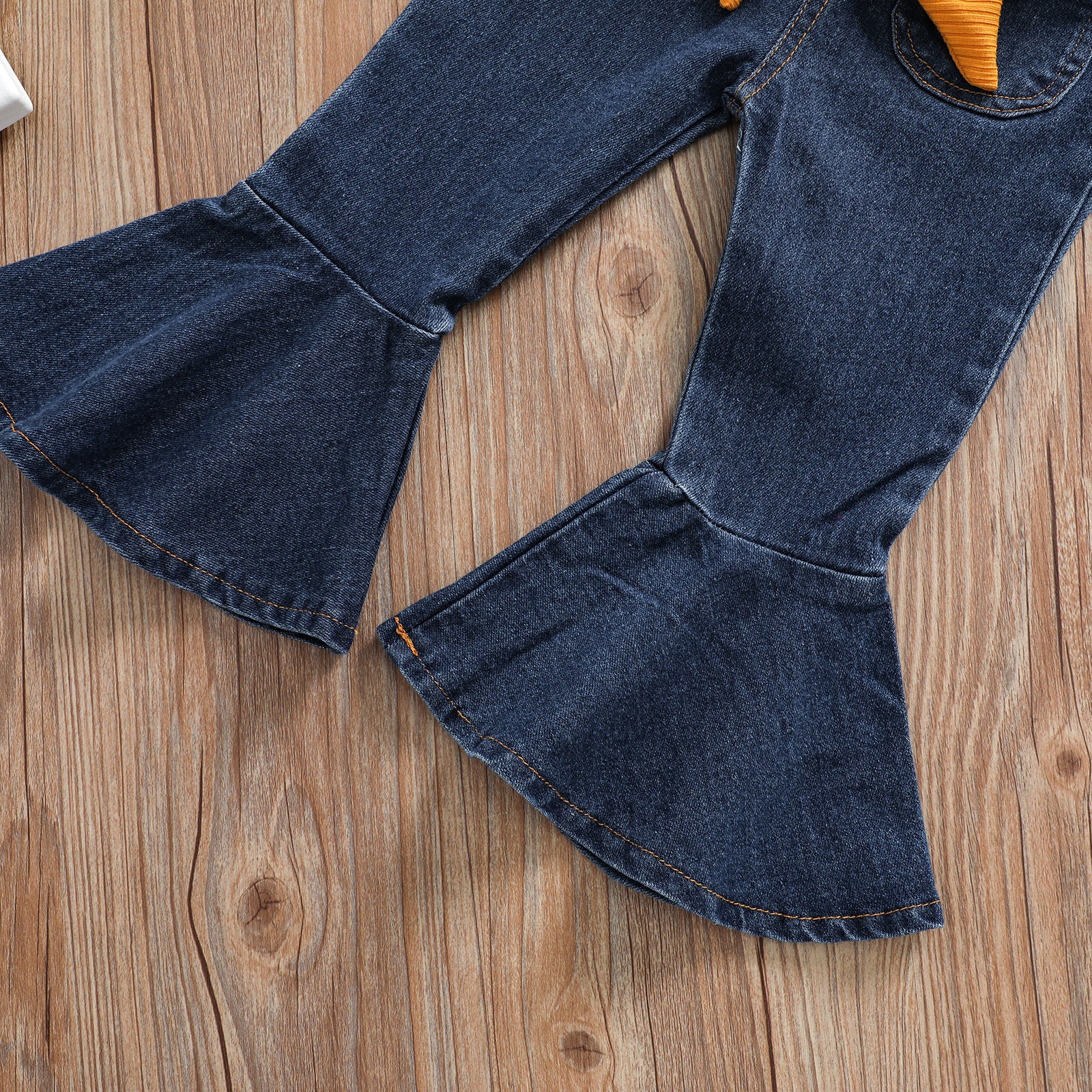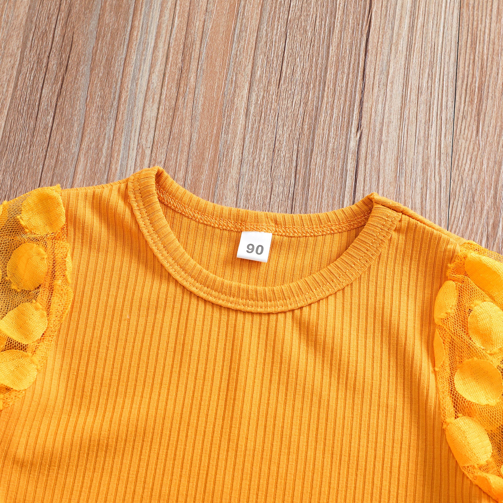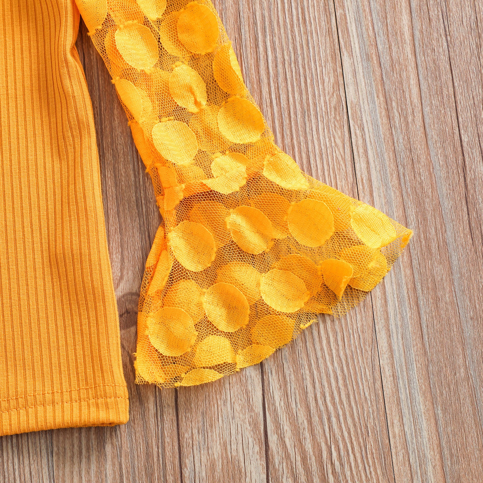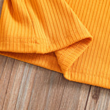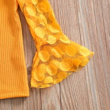 Kid Baby Girl Suit Pure Yellow Hooded Bell-bottom Sets 2 Pcs