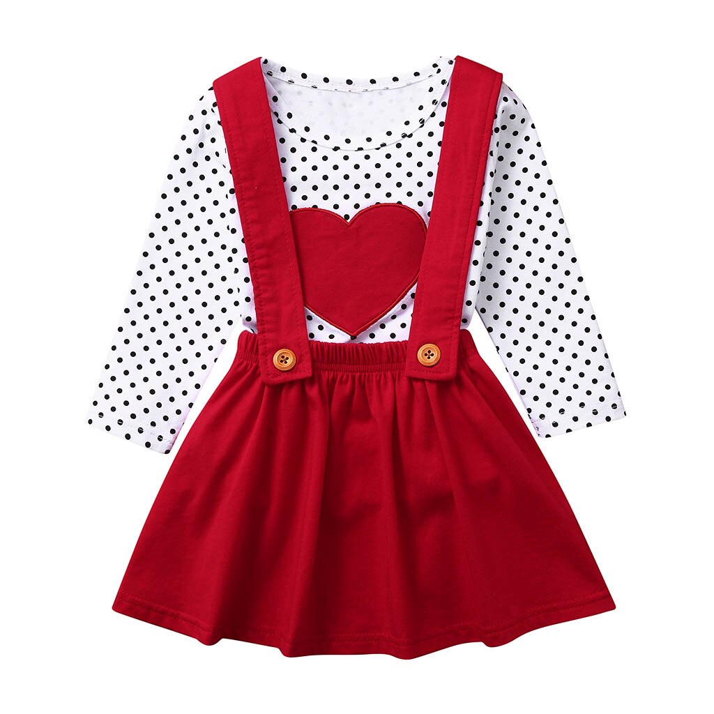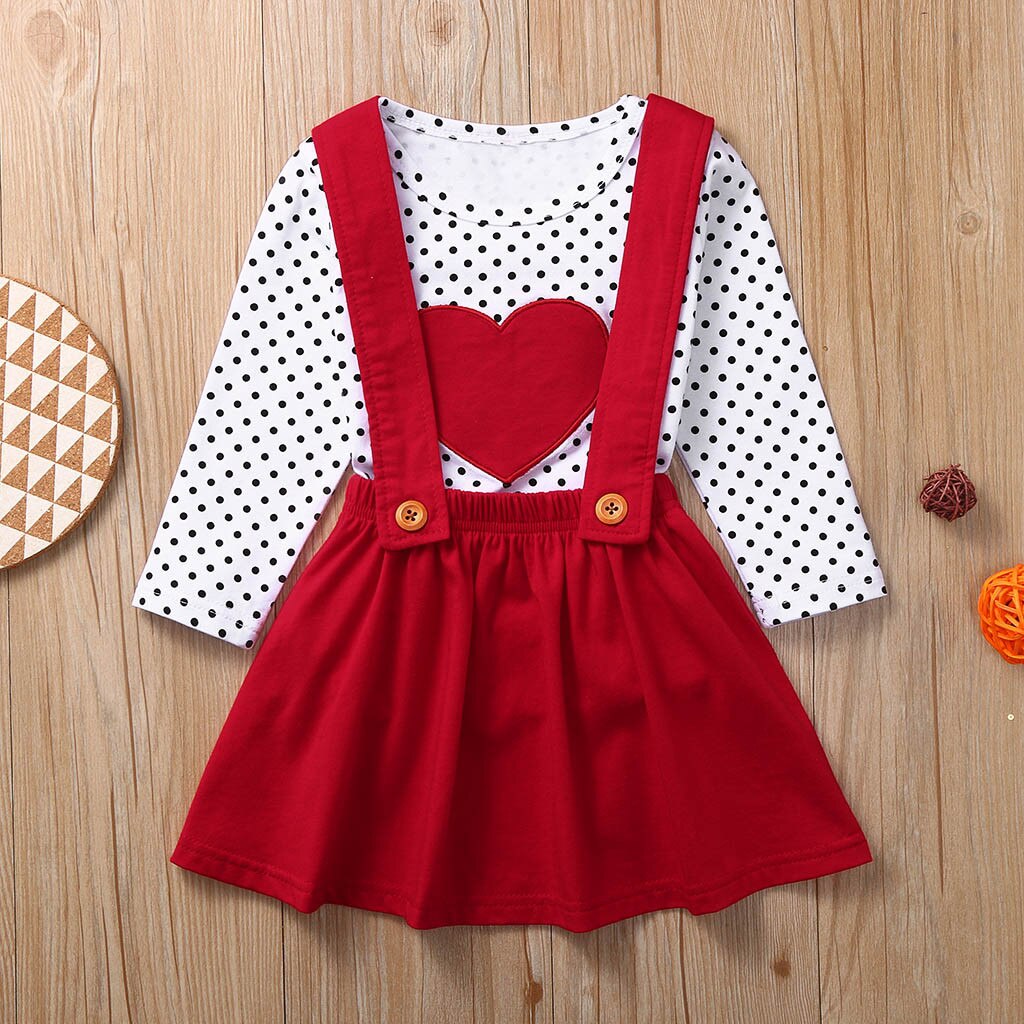 Kids Baby Girls Outfits Heart-shaped Suspender Sets 2 Pcs