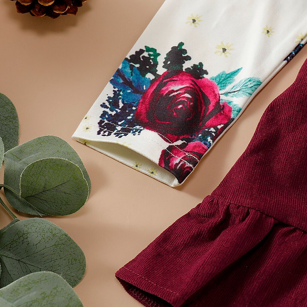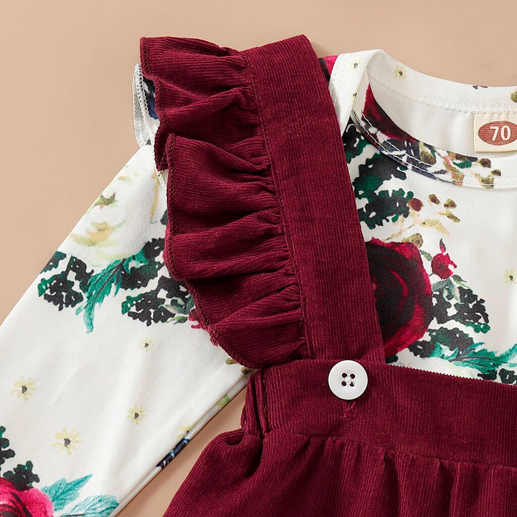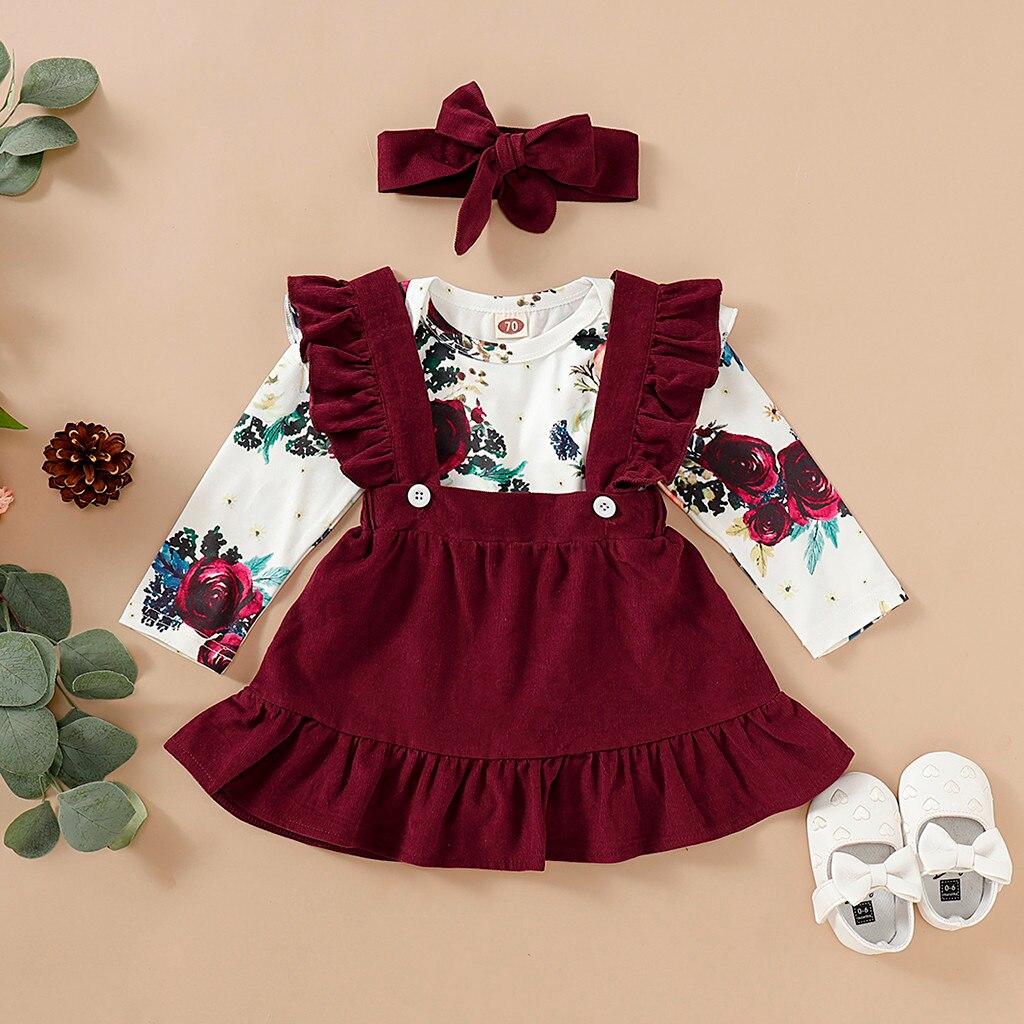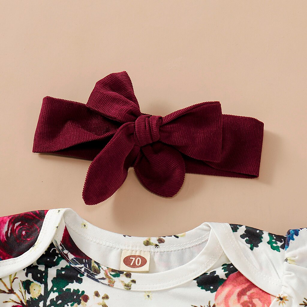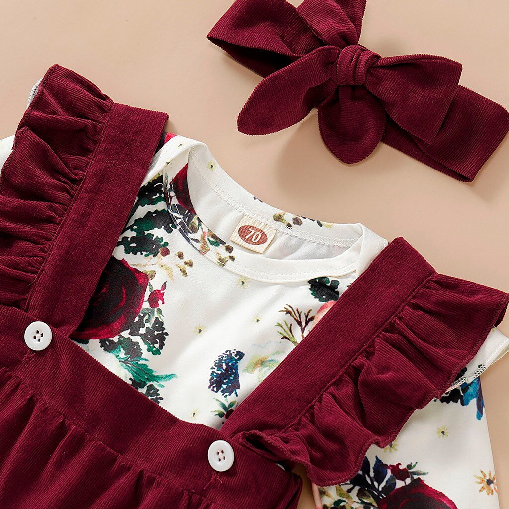 Sweet Baby Girl Long-Sleeve Floral Jumpsuit Dress Headband 3Pcs
