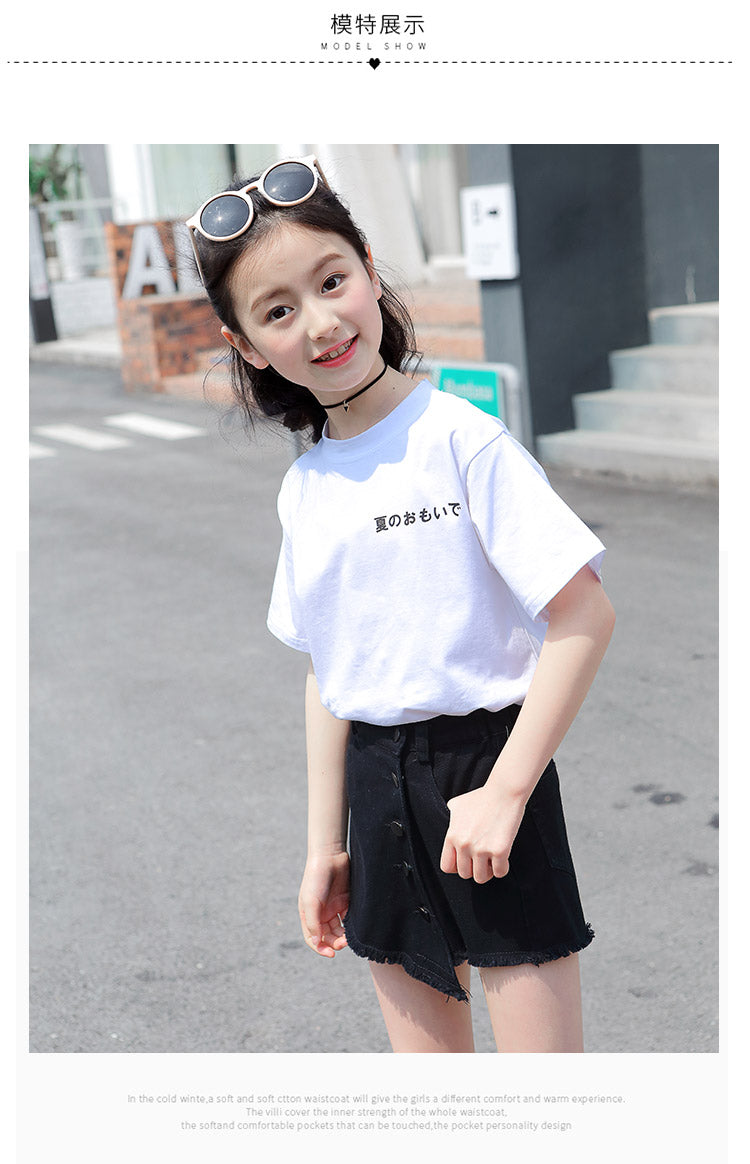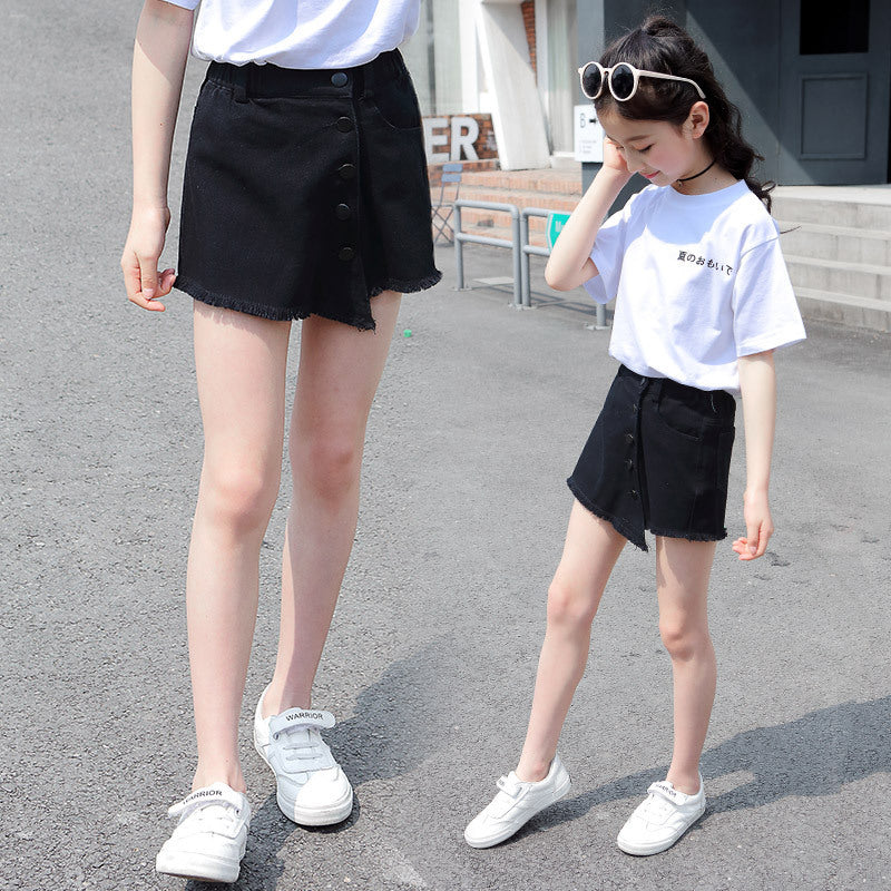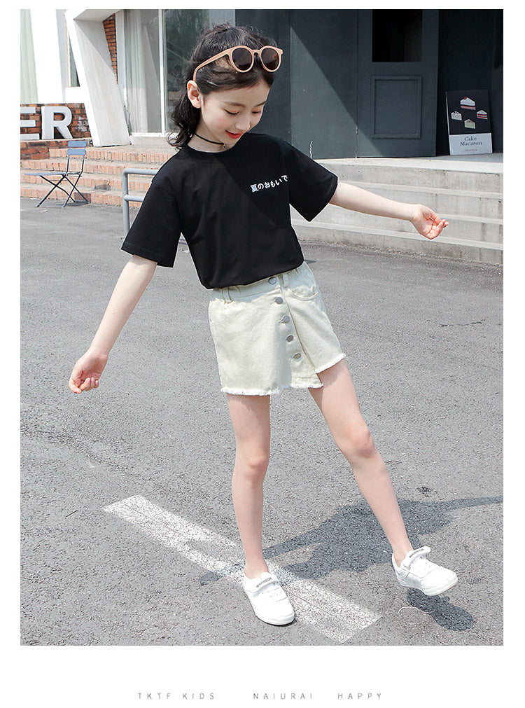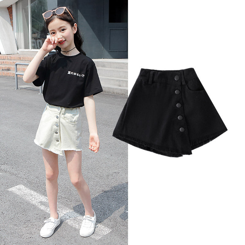 Kid Summer Girl Light Blue Irregular Casual College Wind Basic High Waist Skirts