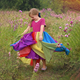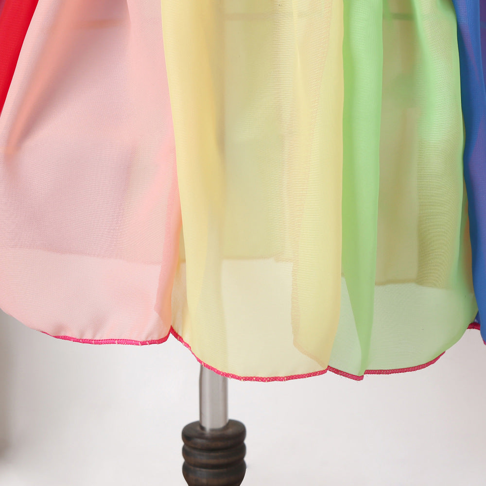 Girl Short Sleeve Rainbow Mesh Rainbow Casual Dresses