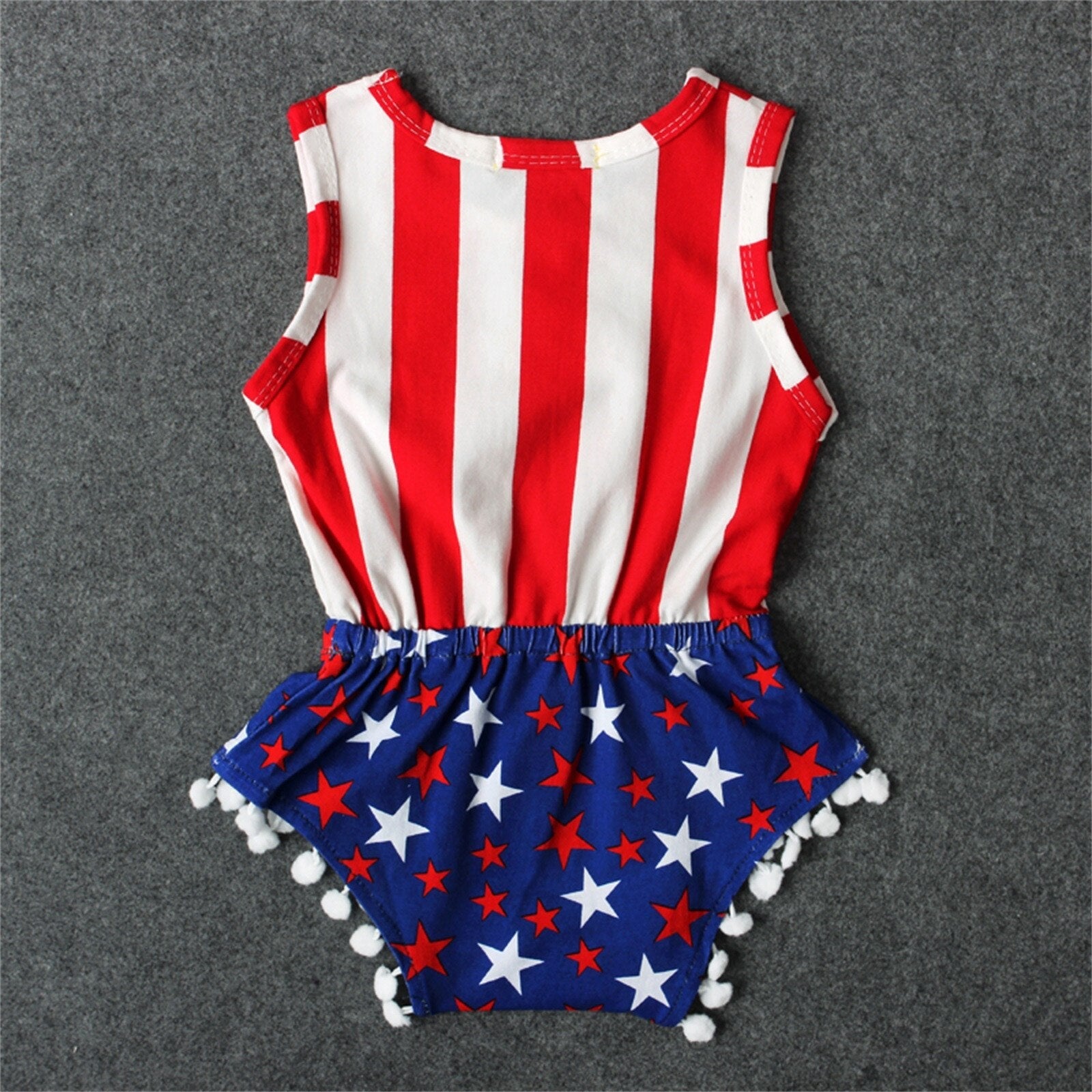 Baby Girl 4th of July Independence Day Sleeveless Bodysuit Rompers