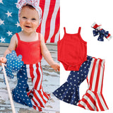 Baby Girl Independence Day Sleeve Solid Romper Striped Sets