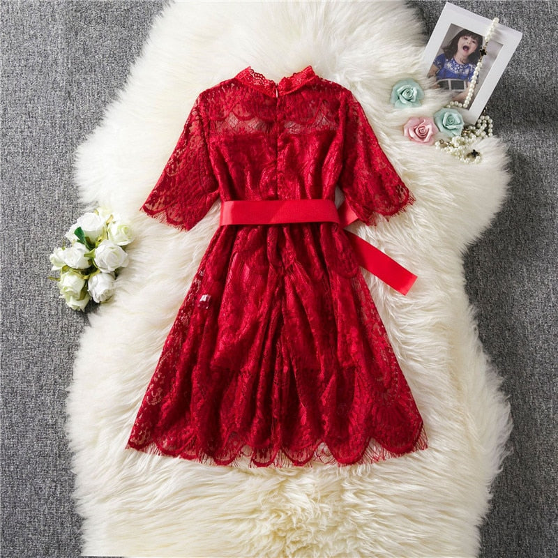 Girls Dress Flower Lace Hollow Party Frocks Dress