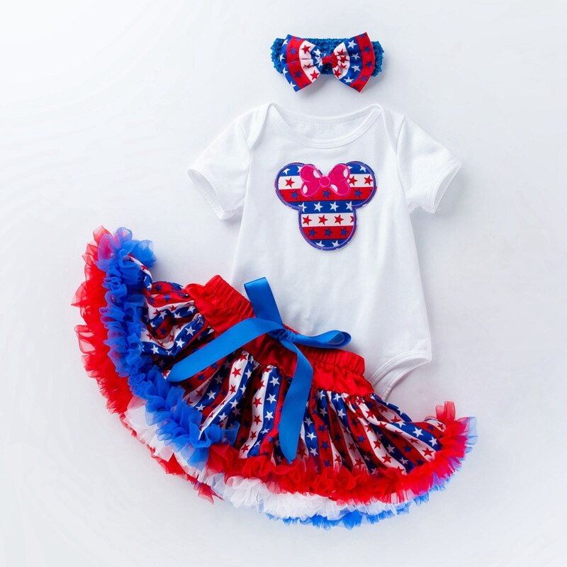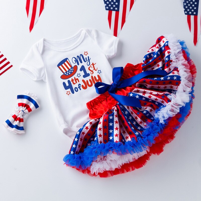 Baby Girl Fourth Of July Independence Day Lace Tutu Summer Sets