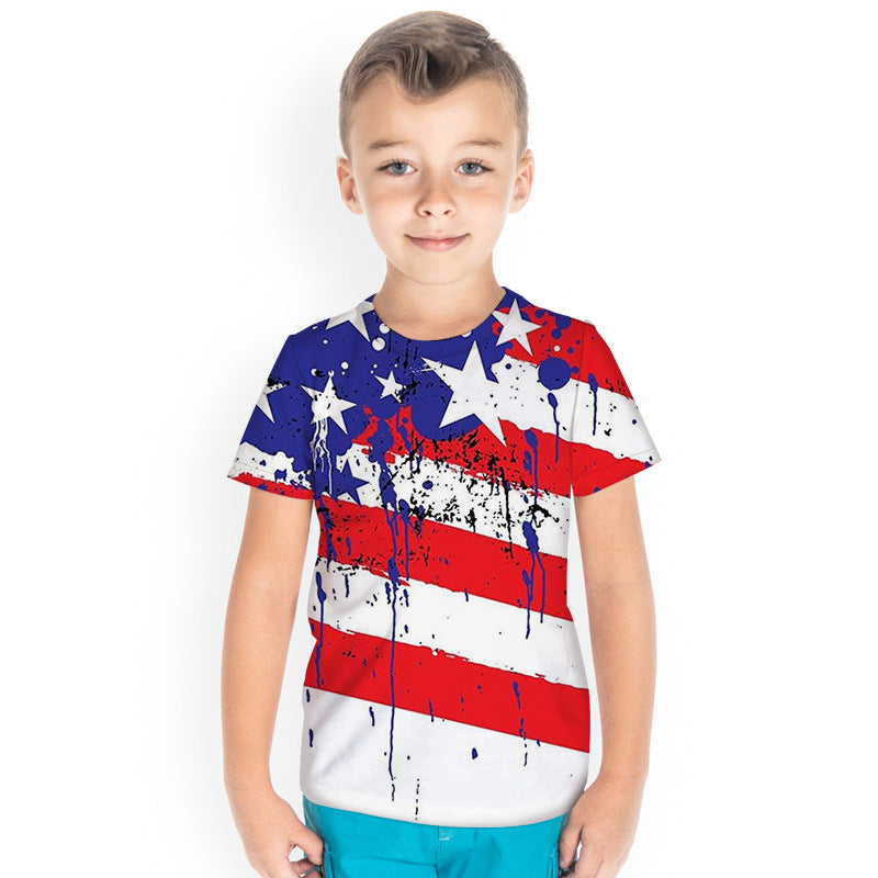 Kid Boy Independence Day Print Short-Sleeved Round-Neck T-shirt
