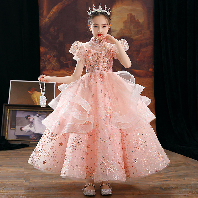 Kid Princess Catwalk Piano Flower Performance Dresses