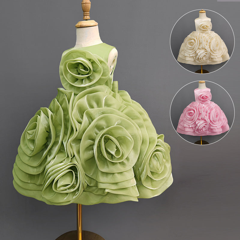 Kid Girl Princess Fashionable Pompous Gauze Flower Wedding Piano Dresses