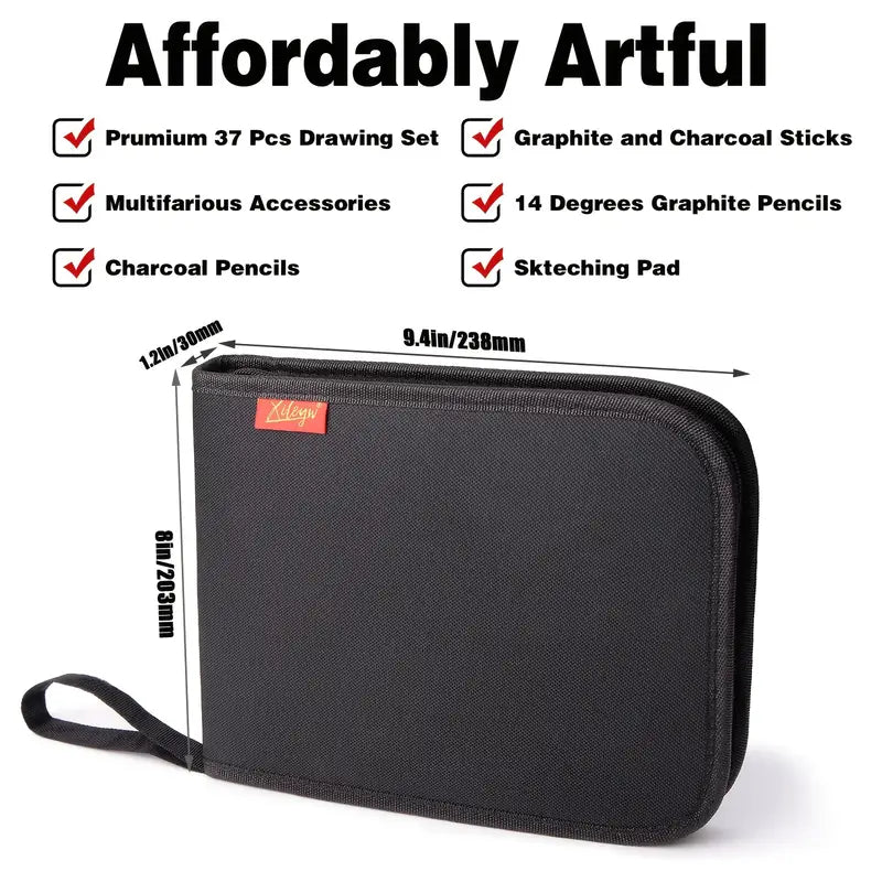37pcs/set Drawing Kit Sketching Pencils Set,Portable Painting Set Canvas Bag Charcoal Pencil Sharpener Art Practice Supplies For Artists Beginner Adults Teens
